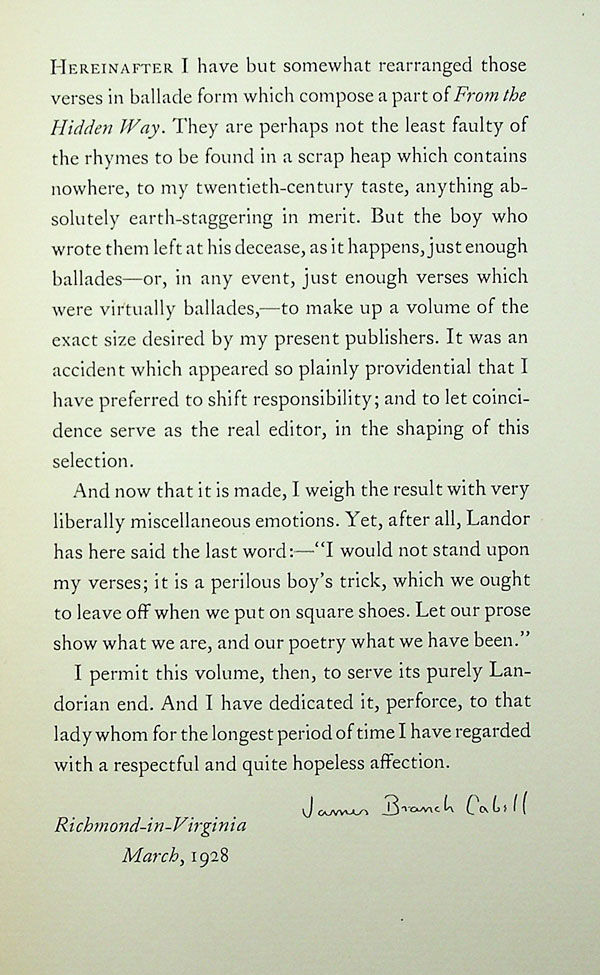 New York: Crosby Gaige, 1928. First, Limited Edition. One of 831 numbered copies specially bound and signed by the author, this being copy no.524. Octavo (24.5cm); blue paper-covered boards and black cloth backstrip, with titling and decorative elements stamped in gilt on spine and covers; [ii],[9],10-41,[5]pp; typography and decorations designed by W.A. Dwiggins. Light wear to extremities, especially the corner tips, resulting in some minor board exposure; Near Fine, lacking the original dustjacket.