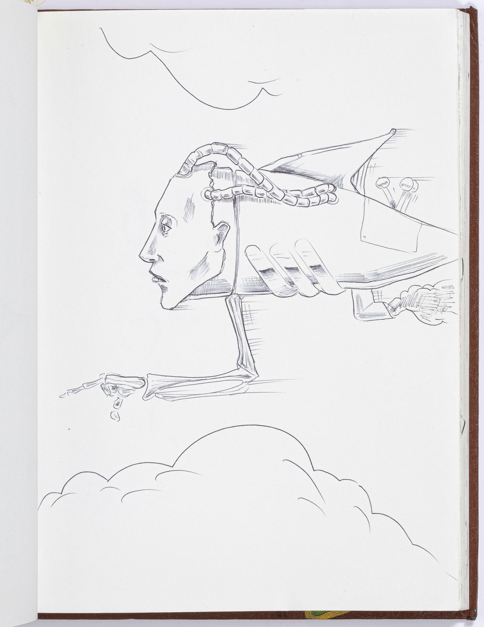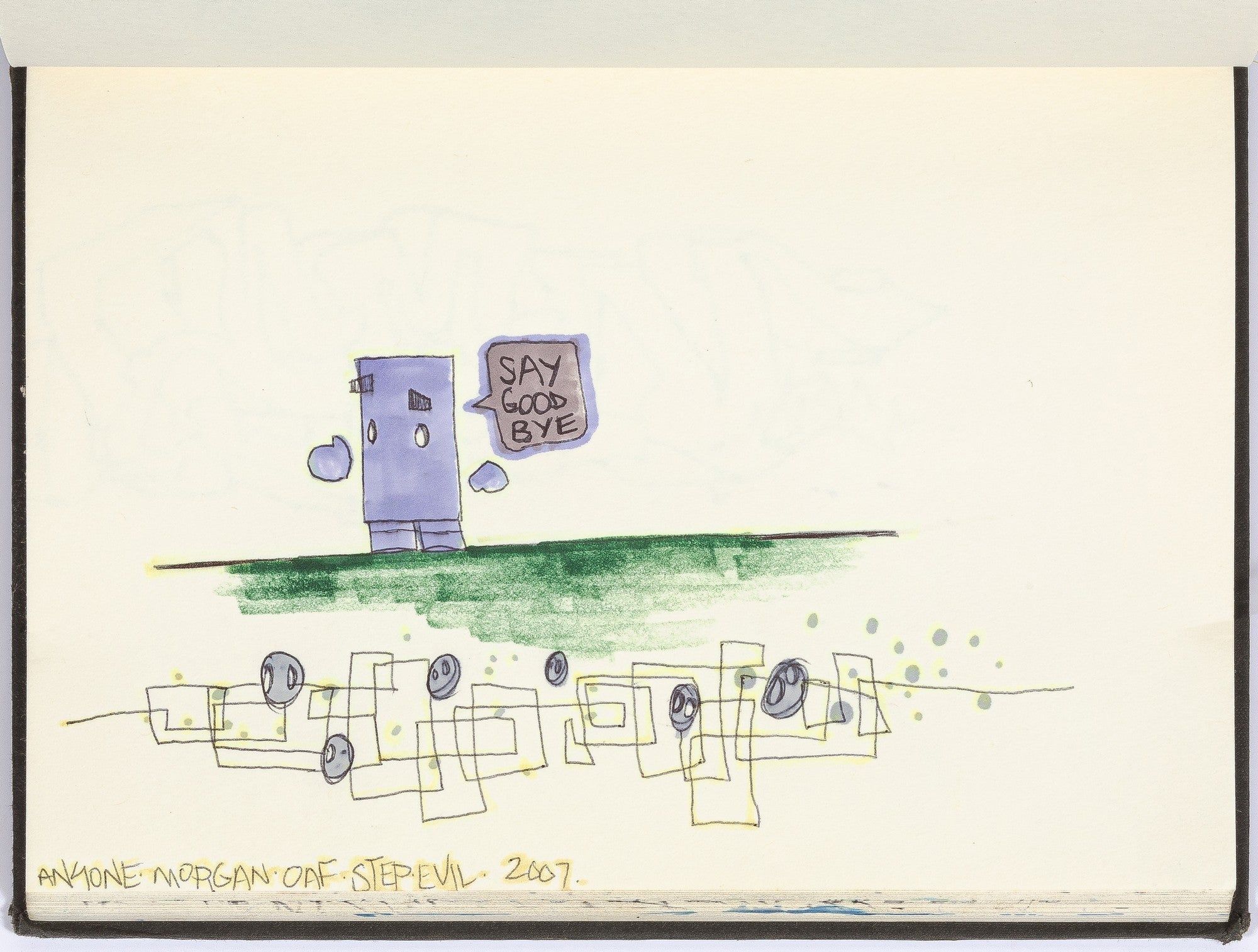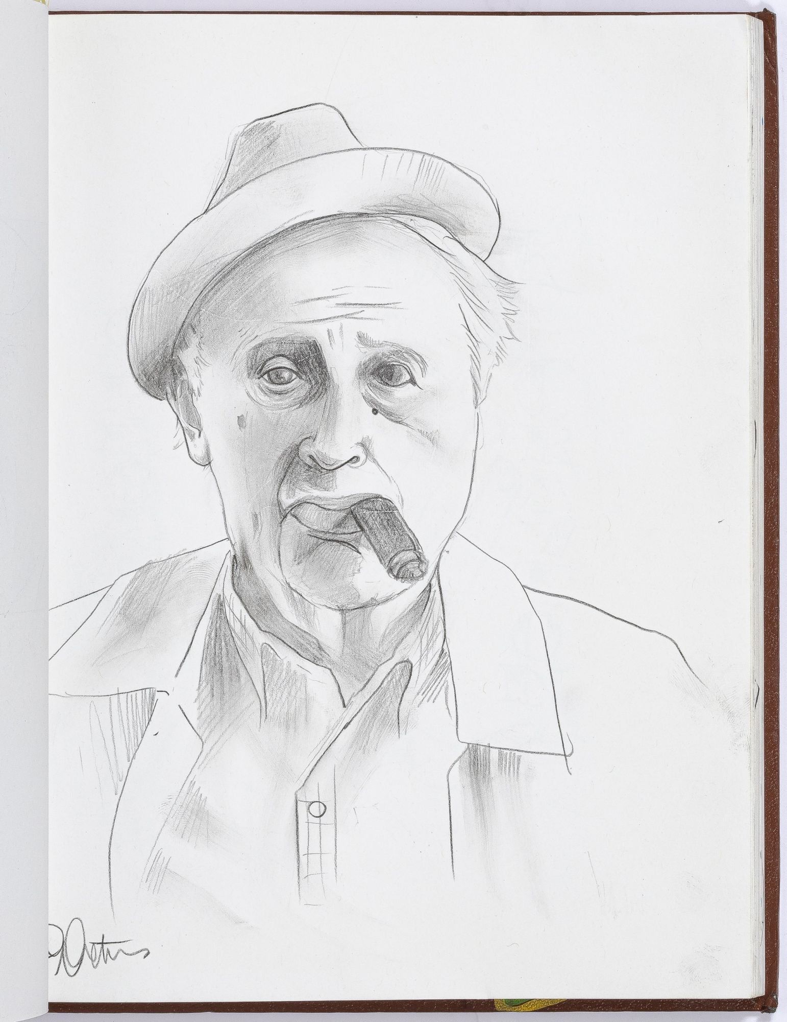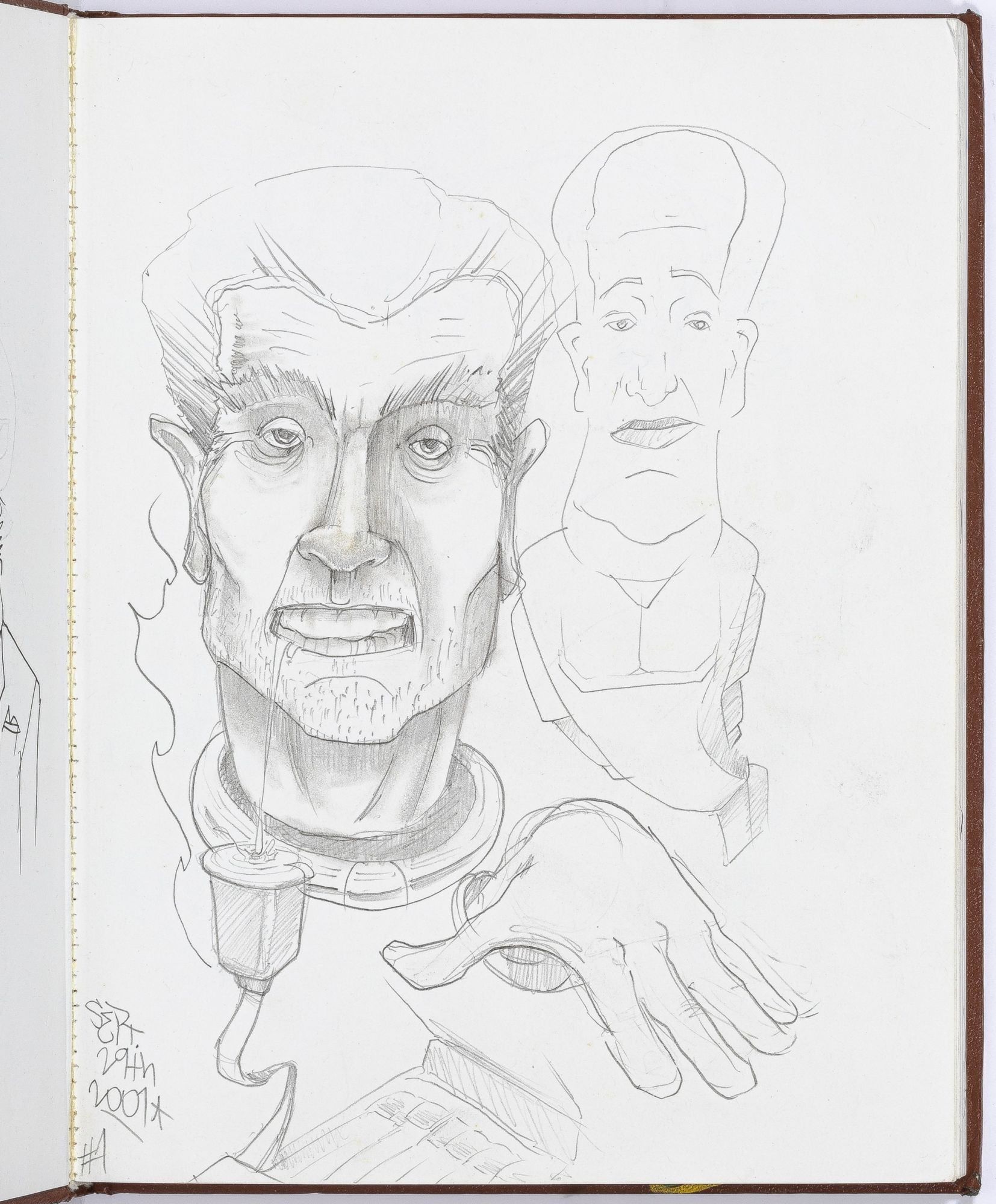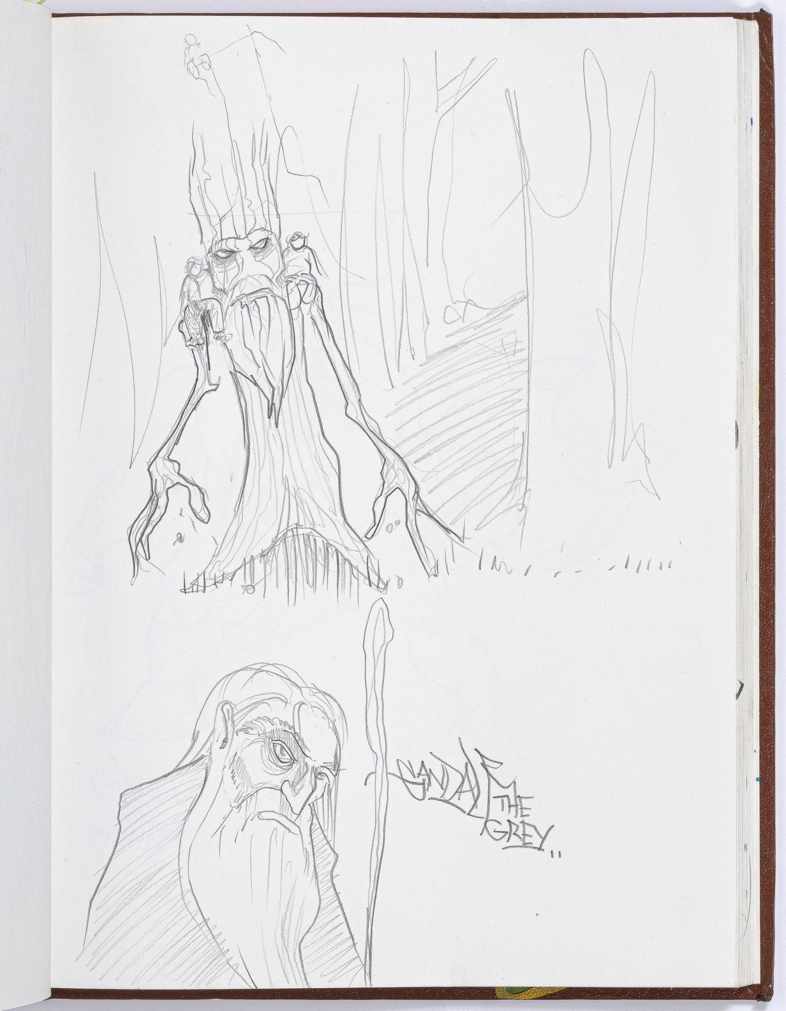 A group of four Black Books and accompanying photographs documenting the work of a Chicago area graffiti writer, who was active on the north side of Chicago between 2001-2007. The books include a range of images, styles and studies, from simple tags to increasingly larger and more elaborate examples. They vary from rough sketches to highly detailed finish drawings, mostly in pencil or ink, but a number in magic marker or paint pens. Three books are largely dedicated to perfecting existing tags, designing new versions, or incorporating additional element, such as figures, faces or highly stylizes backgrounds. One book appears to have doubled as a notebook for an art class, that shows more of a focus on figurative drawings. A number of pages are devoted to faces, hands, body poses, and shading of increasing sophistication, with some clearly resembling tattoo styles. In addition to the artist's own work, there is a smattering of art by fellow graffiti writers. In one image he incorporates a list of his crew into the design.