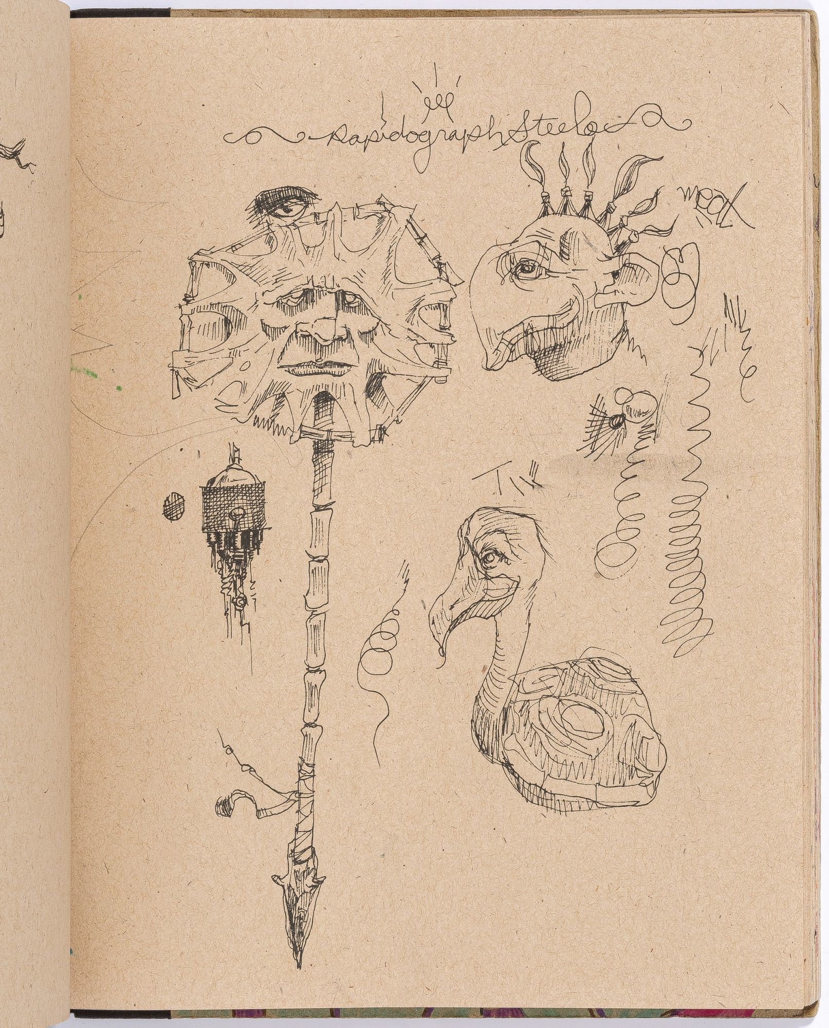 Chicago and St. Louis, 2007. Hardcover. Near Fine. Four artist sketch books. All quartos. Each about 200pp. Three volumes with papercovered boards and one volume with quarter cloth, in various colors, with custom decorated covers. Very good or better with moderate edgewear, one with crude tape repair along the spine. [With]: Oblong octavo screwbound photograph album, lacking its covers, and with six additional loose photo pages. The album contains approximately 266 color photographs, measuring from 3¼” x 2½” to 11” x 4”, but with most 4” x 6”.