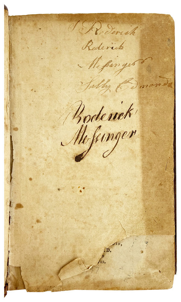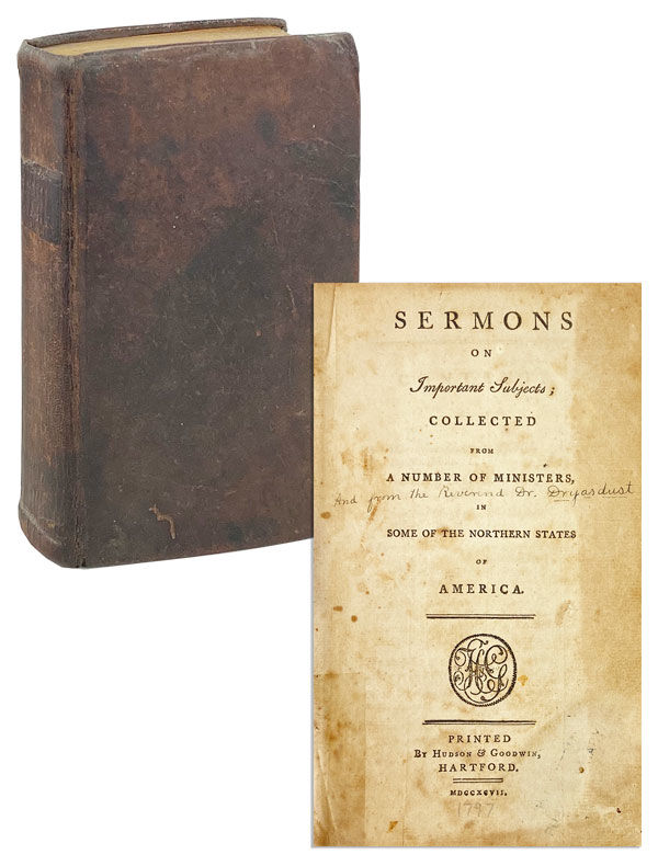 Hartford: Hudson & Goodwin, 1797. Very Good. Hartford: Hudson & Goodwin, 1797. First Edition. Octavo; full contemporary calf, gilt-lettered spine label; [4],516pp. ([A]2 B-3R4 3S2, collated complete). Very slightly ex-Williston Public Library with their discreet and sparse internal markings, contemporary ownership signatures to front free endpaper (separated but present) of a Roderick Messenger and a Sally Coleman (?), along with facetious manuscript note on title page following the text "from a number of ministers": "And from the Reverend Dr. Dryasdust" ("Dryasdust" underlined). Overall Very Good.