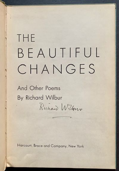 New York: Harcourt, Brace and Company, 1954. Cloth. Very Good. SIGNED BY RICHARD WILBUR on the title page. A solid copy to boot of the 1954 2nd printing (following the 1947 1st printing by Reynal & Hitchcock). Clean and VG in its sea-green cloth, with very light wear along the spine and mild darkening at its base. Octavo, lacking the original dustjacket.