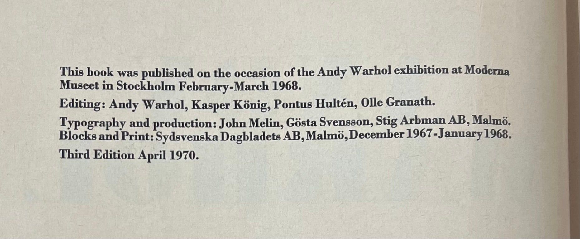 Andy Warhol. Published on the Occasion of the Exhibition at Moderna Museet in Stockholm, February - March, 1968