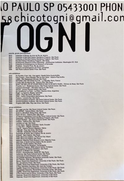 CHICO TOGNI: RUA GIRASSOL 594 AP 502 SÃO PAULO SP 05433001 PHONE.; 58chicotogni@gmail.com