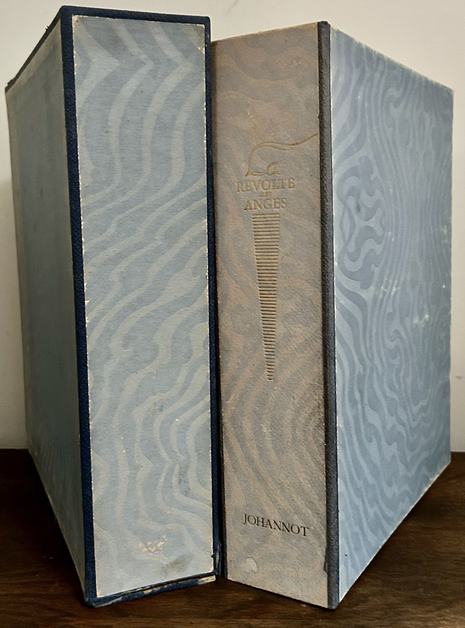 Paris: Calmann-Levy, 1946. Hardcover. Orig. light blue thick boards. Very good in matching very good slipcase. 315 pages. Limited edition, one of 220 on sur velin de Rives with black and white etchings by Pierre Watrin, both full paged and within the text. Interior fresh and clean. The novel presents the classic Christian story: the heavenly war between angels led by the Archangel Michael against others led by Satan. Text in French.