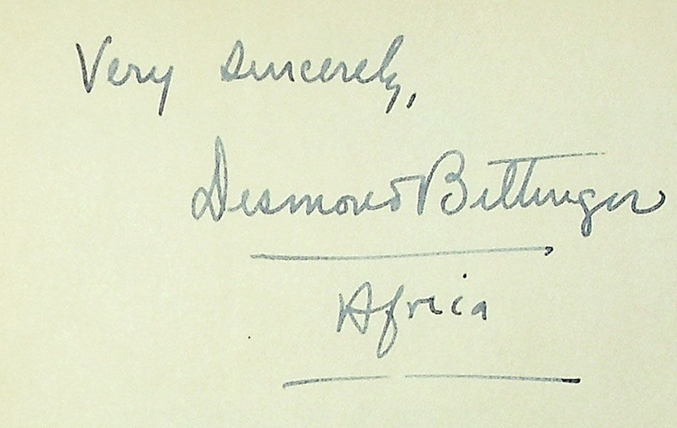 Elgin, IL: Elgin Press, 1938. First Edition. Inscribed on front endpaper: "Very Sincerely / Desmond Bittinger / Africa." Octavo. Yellow cloth hardcover; 254pp; frontispiece map; 8 unnumbered leaves of photographic plates (halftones). Bright copy with just a touch of soil to board edges; spine cloth a shade sunned, Very Good to Near Fine. Contemporary ownership inscription beneath author's signature. Lacks the dustwrapper. Bittinger (1905-1991) was a Church of the Bretheren missionary in northern Nigeria (then Soudan) from 1930 to 1938.