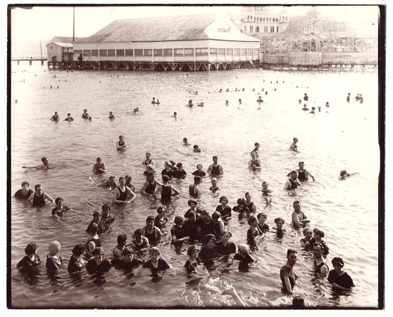 2- Saltair swimmers with Giant Racer in the background [Great Salt Lake], July 4, 1913.