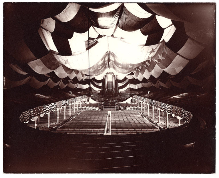 10- Tabernacle with Grand Army of the Republic decorations [Temple Square], August 2, 1909.