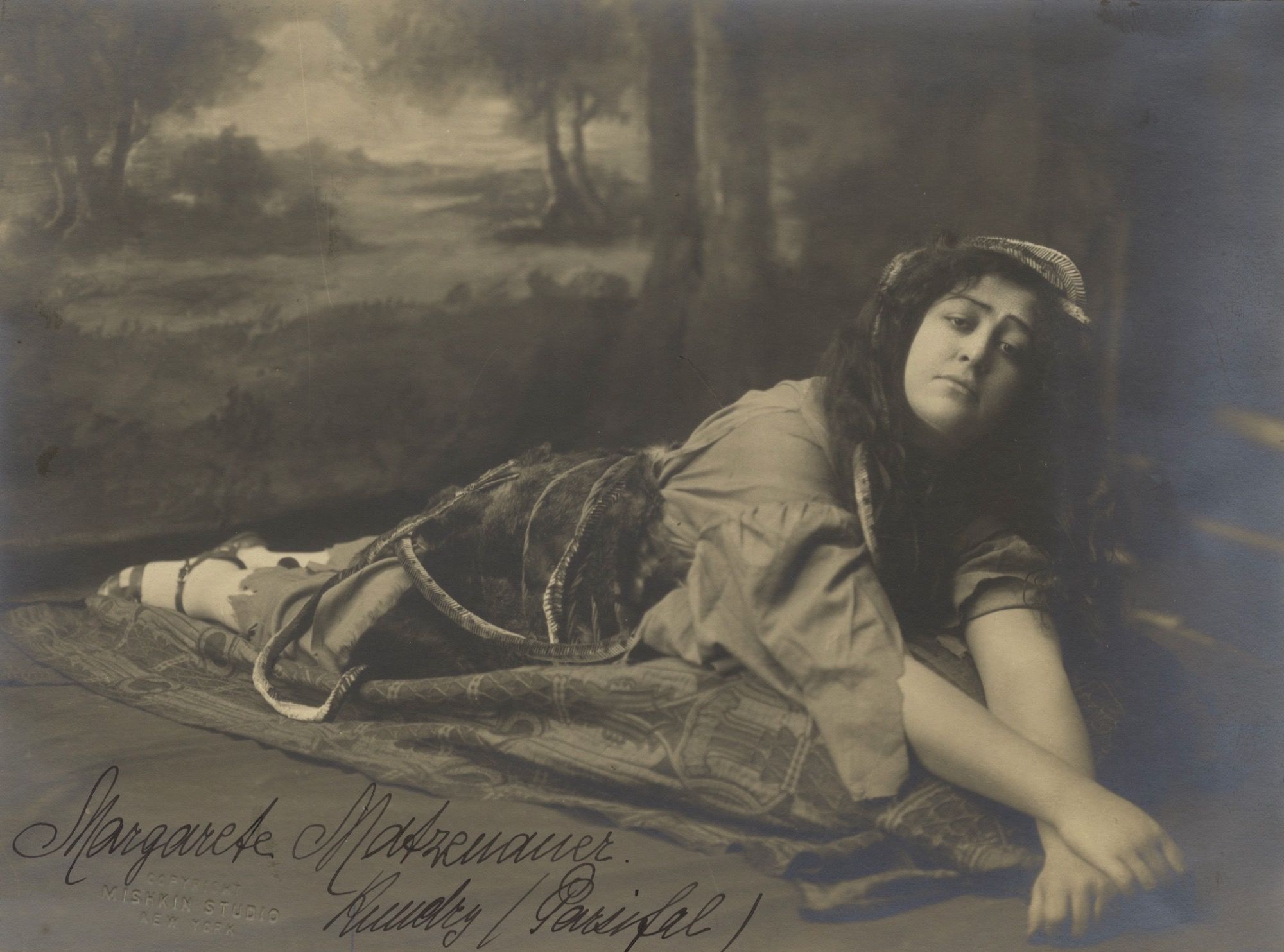 Signed in black ink at lower left "Margarete Matzenauer Kundry / Parsifal." With "Copyright Mishkin Studio New York" embossed to lower left corner. 145 x 197 mm.