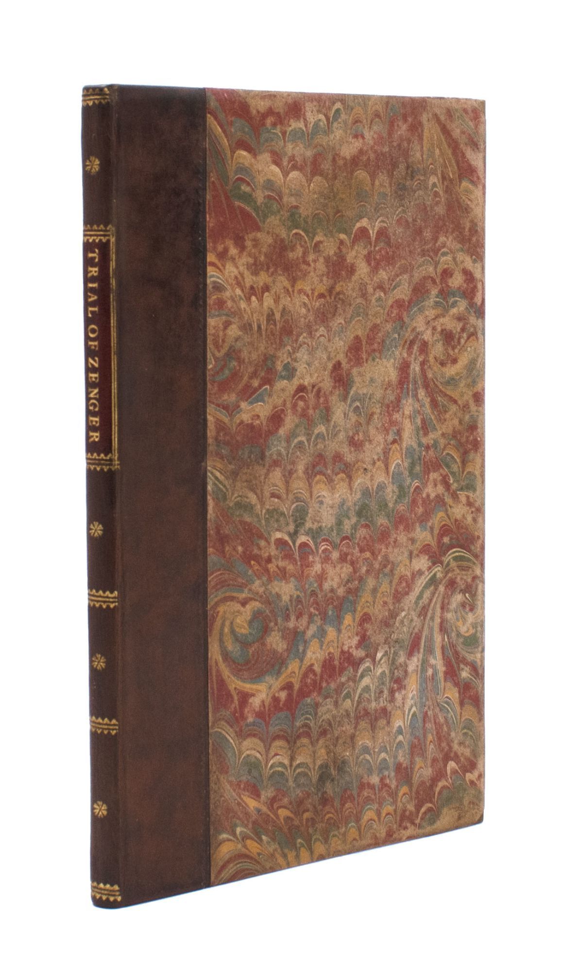 London: J. Almon, 1765. 59, [1]pp. Ad leaf on verso of the final leaf. 8vo. Expertly bound in quarter calf and marbled paper boards. Minor paper repairs to title margins. 59, [1]pp. Ad leaf on verso of the final leaf. 8vo. Zenger's trial represented the first case involving freedom of the press in America: “One of the famous decisions in legal history, establishing the epochal doctrine of the freedom of the press” (Howes).