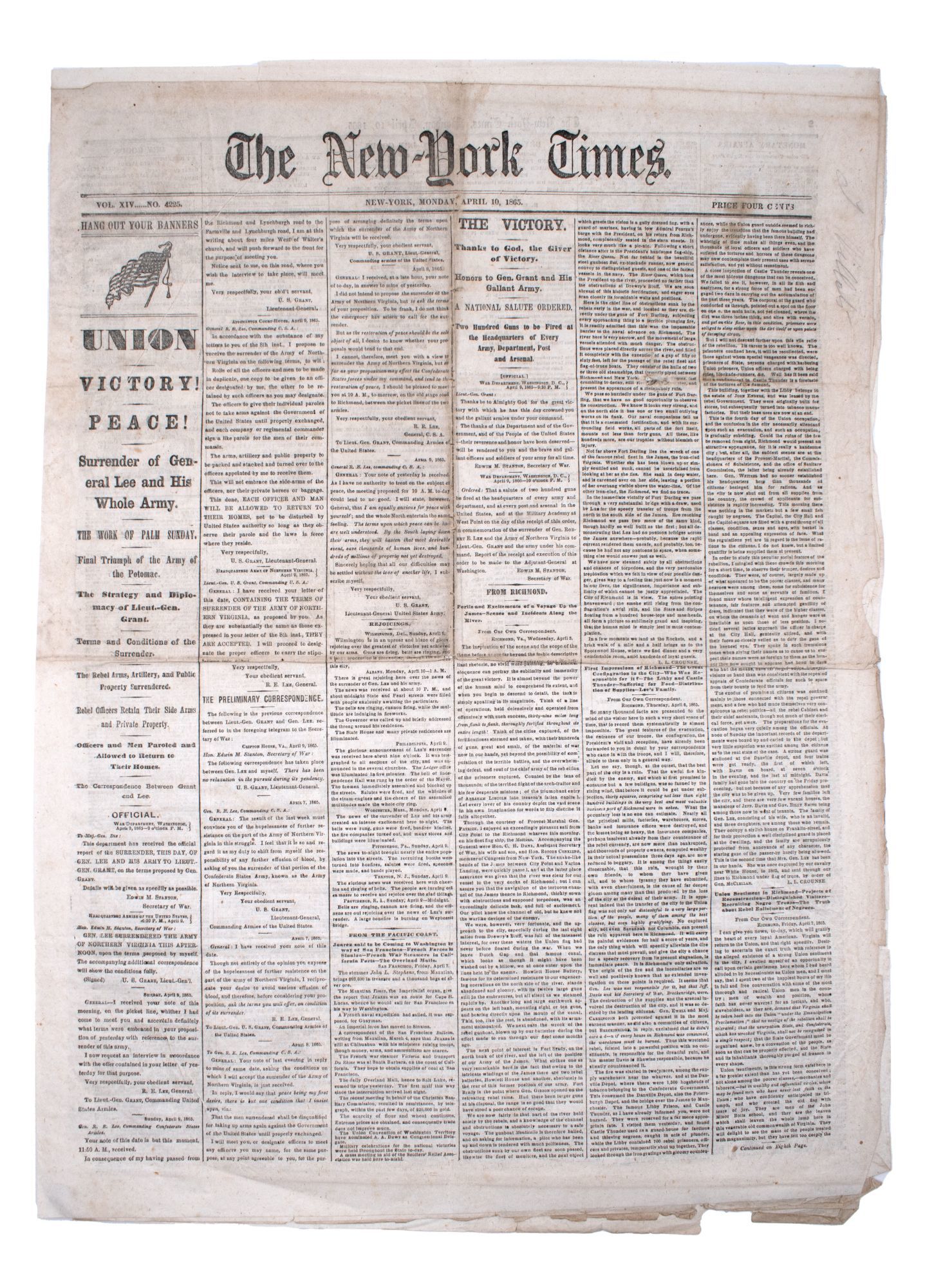 The New-York Times ... April 10, 1865 ... Union Victory! Peace! Surrender of General Lee and His Whole Army