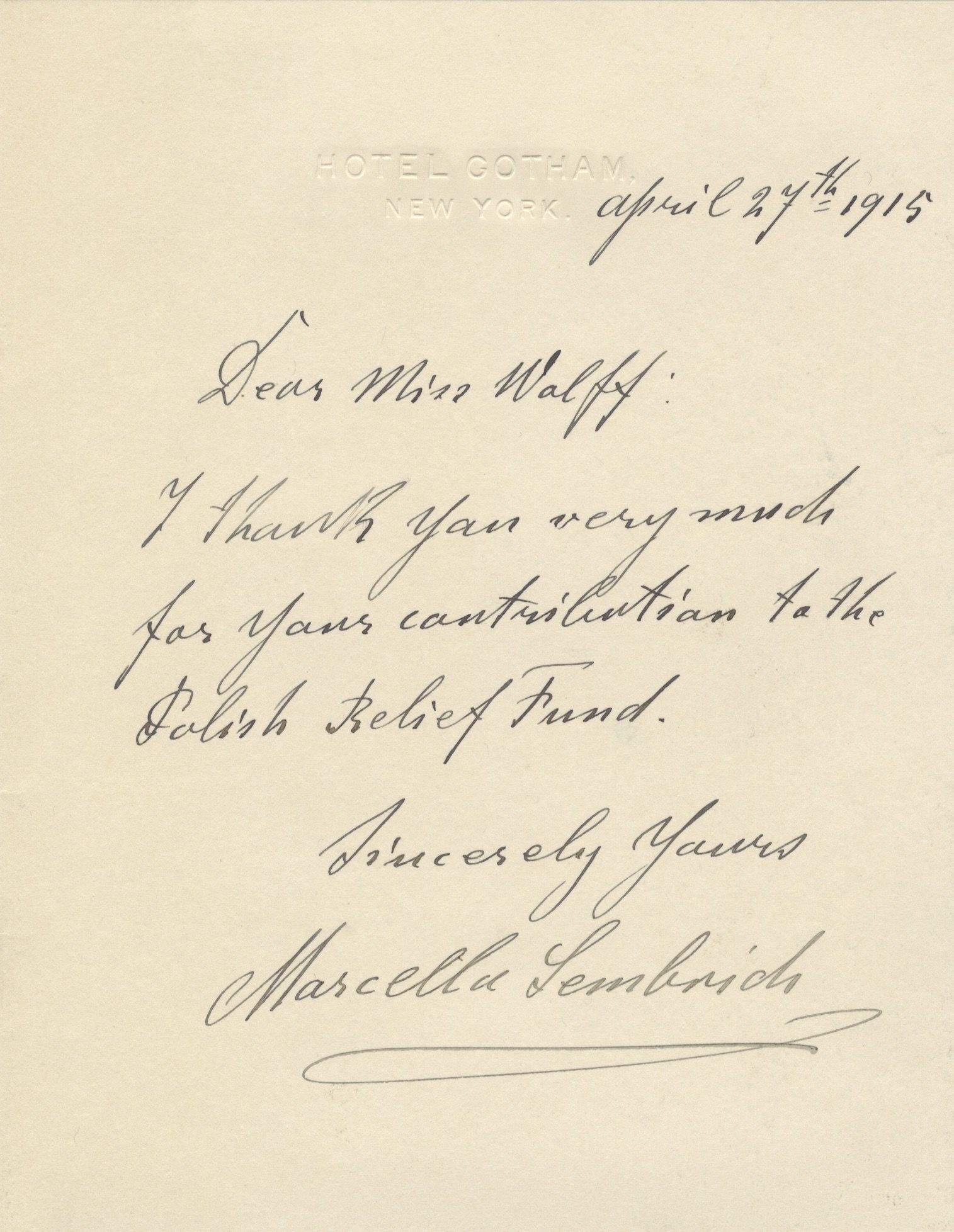 "Dear Miss Wolff, I thank you very much for your contribution to the Polish Relief Fund."