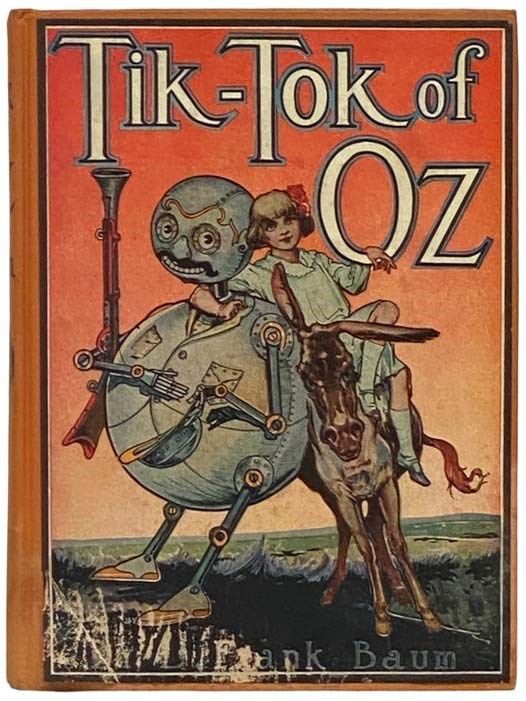 Chicago: The Reilly & Lee Co, 1970. Reprint. Hard Cover. Fair/Fair. 9x6x1. Neill, John R. 1934-1950s printing (Bienvenue pp. 55-59). Includes original jacket. Stained along base, large portion of jacket spine and front panel missing, rear jacket flap separated from rear panel, jacket price clipped with ink price stamp beneath. 1970 Hard Cover. 272 pp. Orange cloth, black titles, color picture plate mounted on front board, black-and-white illustrations by John R. Neill. This entry in the Oz series features the adventures of Tik Tok (a mechanical man), the Queen of the Oogaboos, the Shaggy Man, and the evil King Nome.