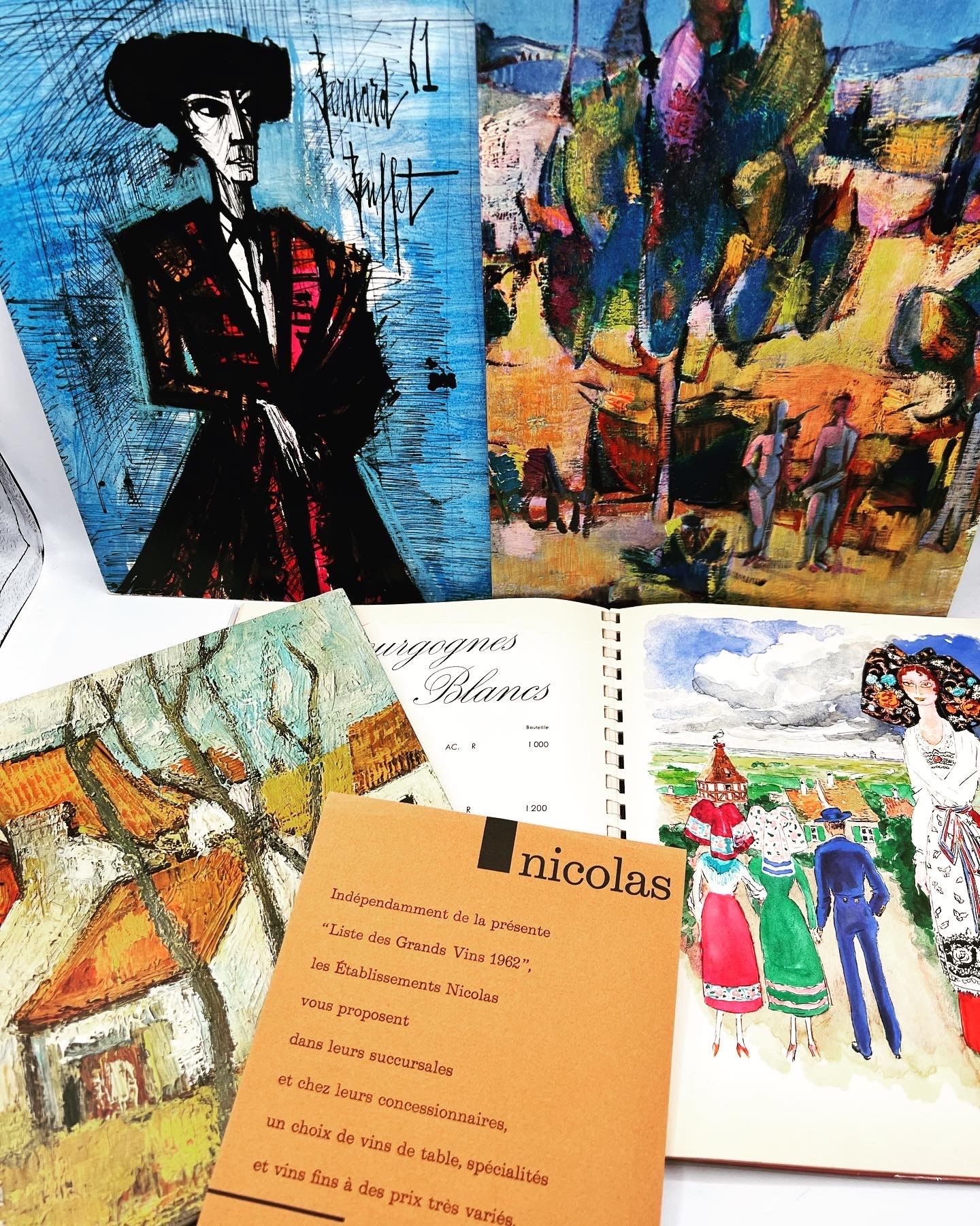 This collection contains the rare catalogs of 1929 (showing a tipsy bottle of wine printed in gold, framed with red type), 1930, 1931 and 1972. Nicolas' catalogs were illustrated and designed by famous artists and typographers, e.g. A.M. Cassandre, Georges Darcy, Paul Iribe, Louis Legrand, Henri Fantin-Latour, Demetrios Galanis, André Diginimont, Bernard Buffet, roger Chapelain-Midy, Francois Kollar, Bernard Lorjou, Kees van Dongen and others. The illustrations are rendered in different techniques, including screen printing, lithography, photomontage and four color printing.