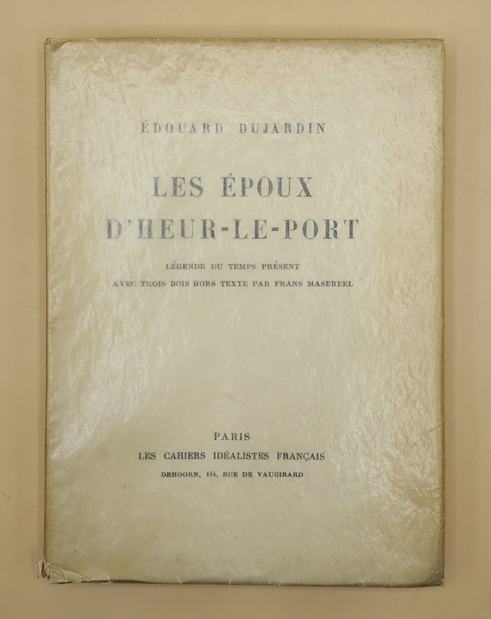 Paris: Les Cahiers Idéalistes Français, 1920. First edition. Paperback. Very Good. Frans Masereel. 119pp. Duodecimo [19 cm] Wraps with a printed french fold wrapper, and additionally in the publisher's glassine wrapper, with minor tears to the edges. Some darkening to the preliminary and terminal leaves of the book. Ritter C a) 16. With 3 illustrations by the Flemish graphic designer and woodcut artist Frans Masereel.