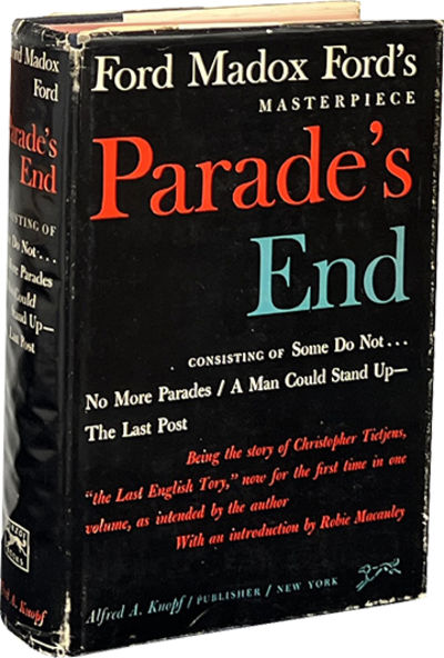 New York: Alfred A. Knopf, 1966. Hardcover. Very Good/Very Good. Third Printing. Introduction by Robie Macauley. Very Good in a Very Good jacket, unclipped ($7.50), generally rubbed and bumped at the surface and edges, a few small closed tears. Blue cloth, lightly bumped, with a red ink panel with gilt lettering and designs on the spine. Square and firmly bound with a red top stain, bookplate pasted on the front endpaper, a few pencil annotations scattered throughout. Ford's tetralogy of British life before, during, and after World War I. Hailed by Graham Greene as "almost the only adult novels dealing with the sexual life that have been written in English. They are almost our only reply to Flaubert.