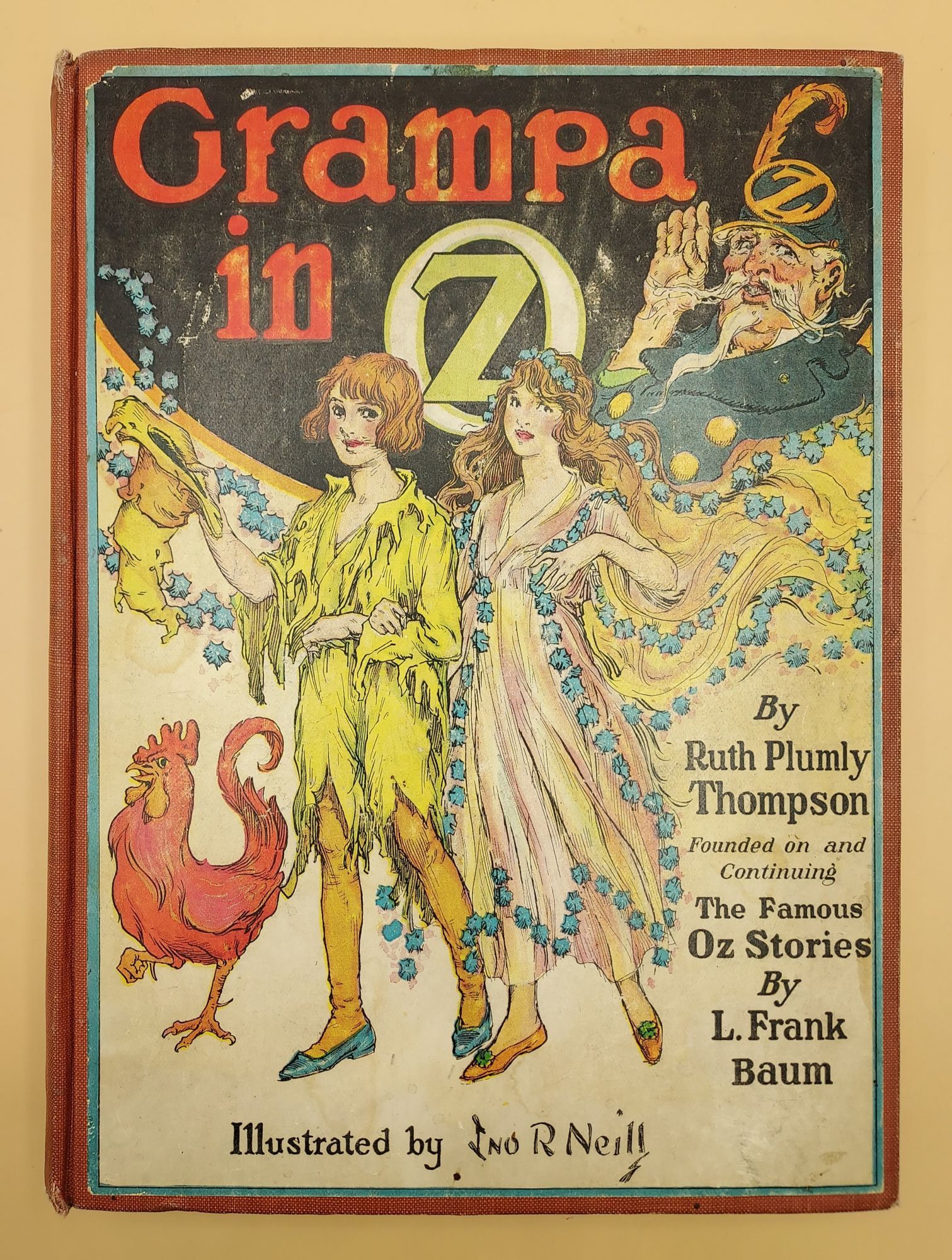 Chicago: Reilly & Lee, 1924. First edition. Hardcover. Very Good. 271pp. Octavo [23.5 cm] Red cloth with a full-color illustrated label that covers the front board. Title printed in black on the backstrip. Illustrated endpapers. Contemporary gift inscription on the ownership page; text block cracked a couple of times, but remains very sturdy. Jacket is not present. "171" is in perfect type, and the last word in the second to last line of p. 189 is in perfect type as well. Complete with all twelve full-color tipped in plates by John R. Neill. This is the Eighteenth book in the Oz series. Bienvenue p.105-106. Hanff/Greene p.90-91.