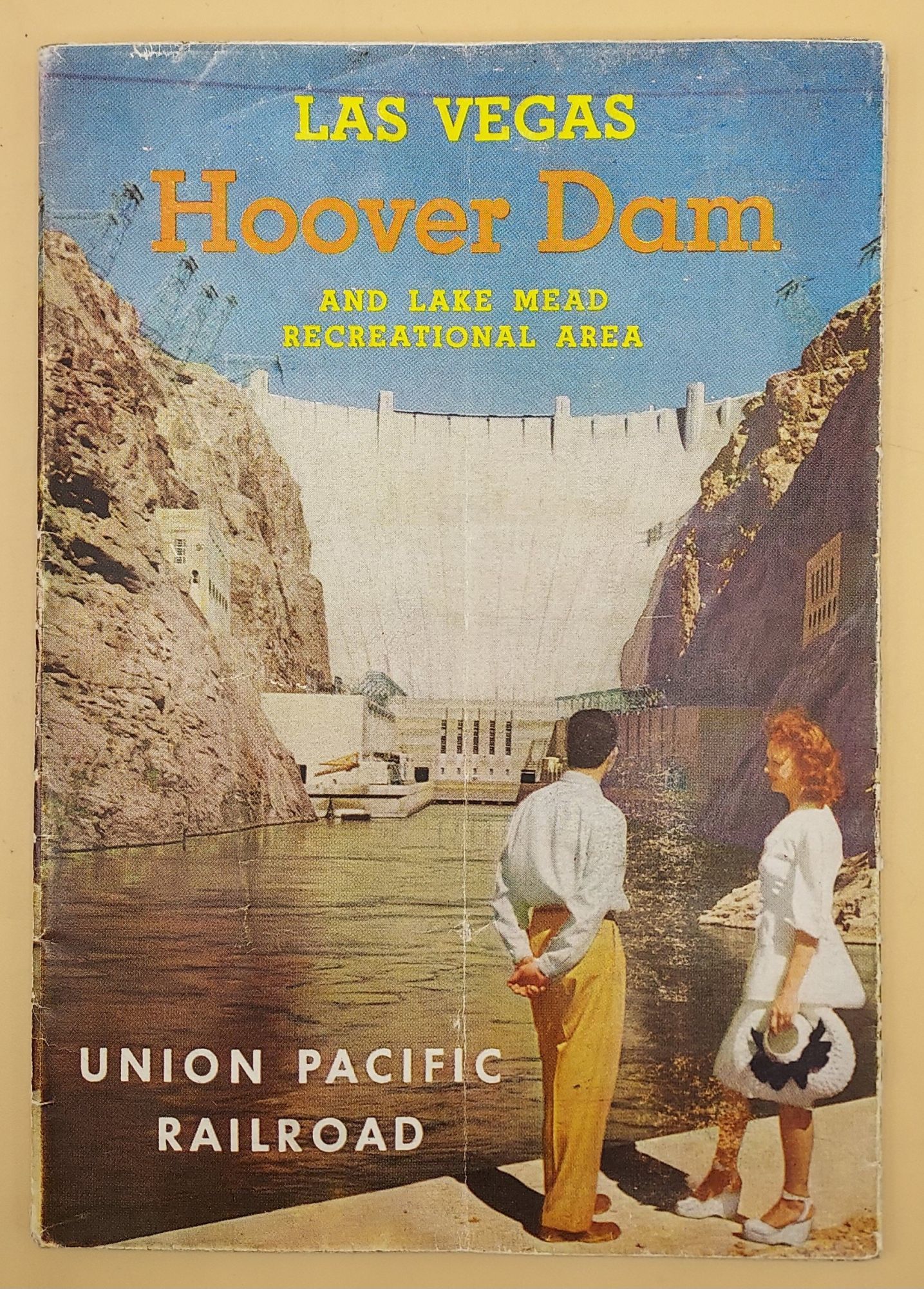 Chicago: Poole Bros. Inc, 1947. Map. Very Good. Folded brochure which when unfolded has informative text on one side, and is printed with a map of Hoover Dam on the reverse. Bottom trimmed close. 30 1/2 x 18" when unfolded. With a handful of small splits to the folds. A birds-eye view of Hoover Dam published as promotional advertising for Union Pacific Railroad.
