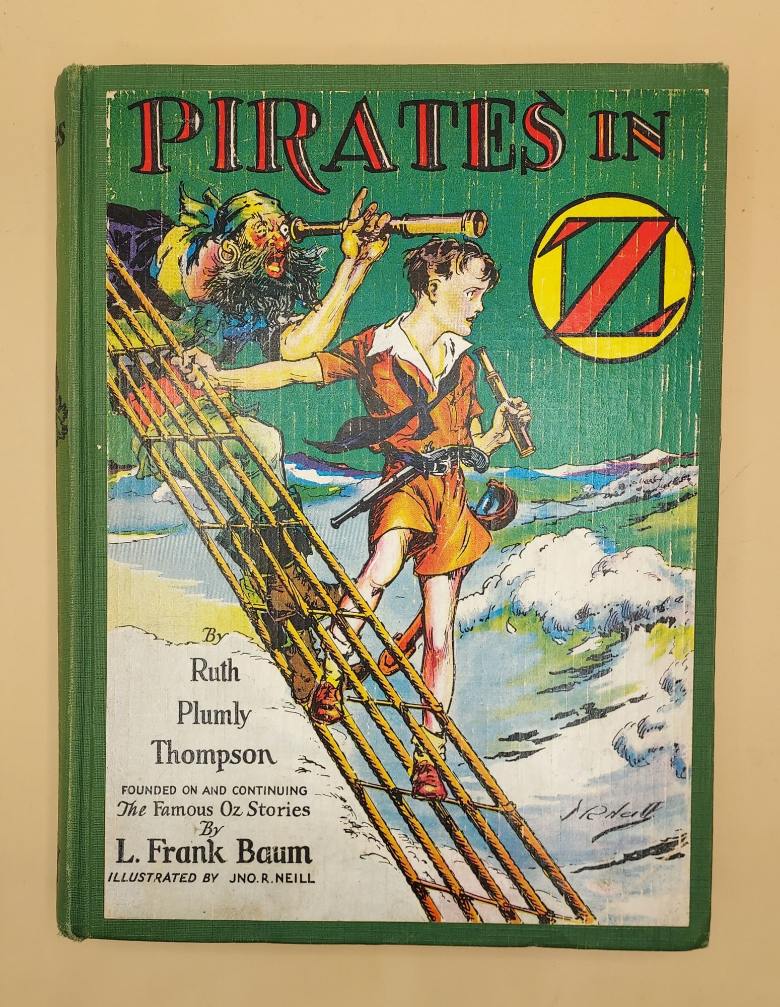 Chicago: Reilly & Lee, 1931. First edition. Hardcover. Good. John R. Neill. 280pp. Octavo [23.5 cm] Green cloth with a full-color illustrated label that covers the front board. Title printed in black on the backstrip. Publisher's imprint in bold face. The text block edges have the publisher's bright yellow stain. Endpapers illustrated in black and white. Illustrated with 12 full-color plates. Jacket is not present. Binding 'A'. Several small white stains to the rear board; rear hinge split; front hinge soft; small bites to the top fore-edge corners of a handful of pages. This is the twenty-fifth book in the Oz series. Bienvenue p.113. Hanff/Greene p.97-98.