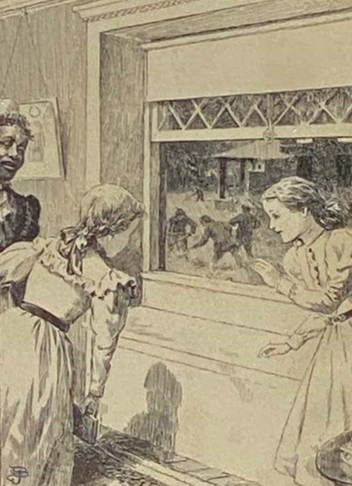 New York: Thomas Y. Crowell & Company, 1899. First Edition. Hard Cover. Very Good/No Jacket. First edition. Top edge stained, sticker remains on front free endpaper, minor general wear. 1899 Hard Cover. 190 pp. EXCERPT: Everyone in the dim basement had a perfect right to feel proud for coming to Sunday school on such a morning. The rain was pouring in torrents; it dashed against the window panes in a fury. The ever greens in the churchyard groaned dismally as they swayed to and fro, and every now and then a branch brushed across one Of the frosted windows. Then so suddenly that a very little boy cried Oh! The beautiful sun burst through the clouds, the trees discontinued to sway, and the rain gave a farewell splash and dash against the windows. The storm was over; and the chil dren hurried out of the large room, eager to look at the rainbow.
