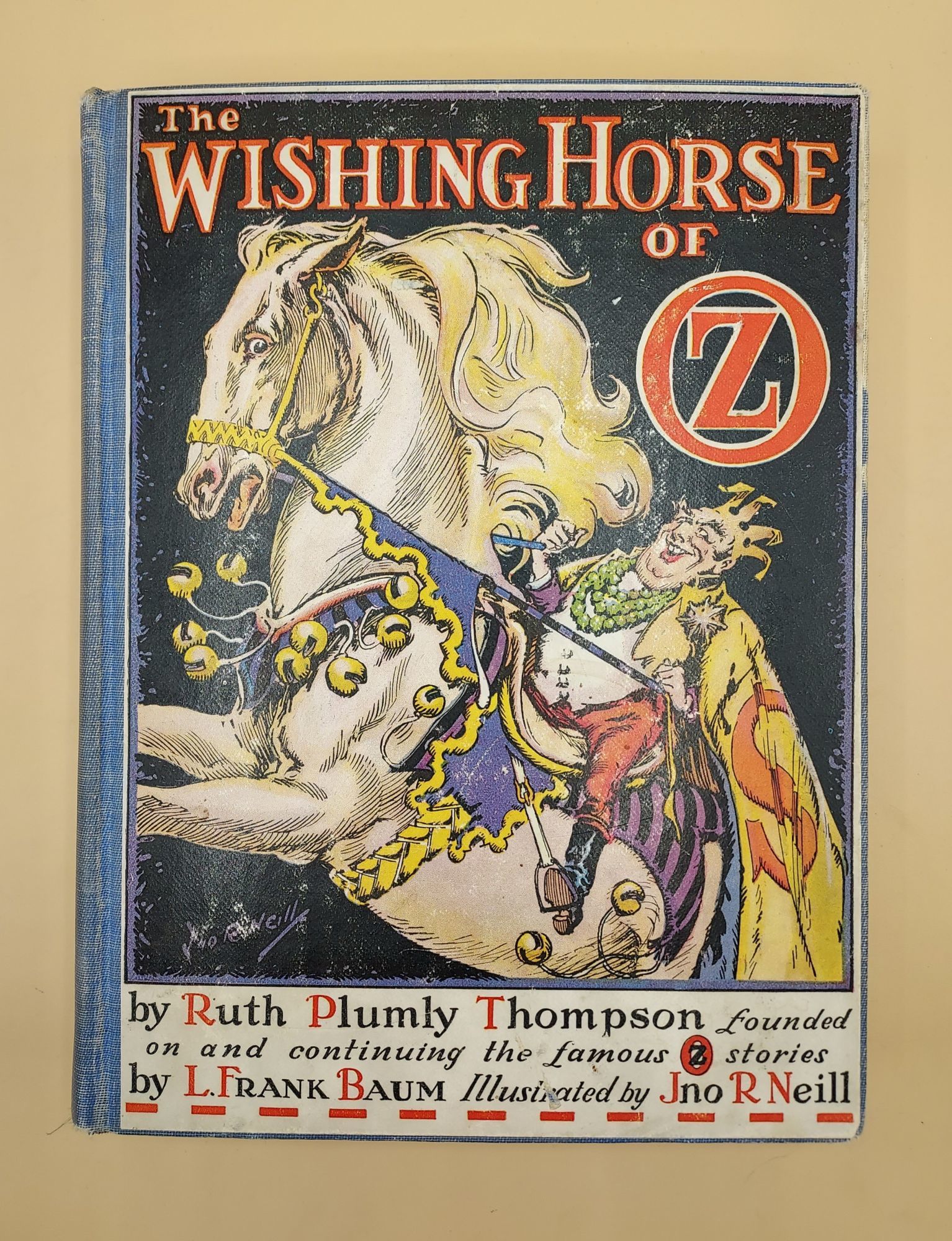 Chicago: The Reilly & Lee Co, 1935. First edition. Hardcover. Very Good. John R. Neill. 298pp. Octavo [23.5 cm] Pale blue cloth with a full-color illustrated label mounted to the front board. Title printed in black on the backstrip. Black and white striped headband. Blank self-endpapers. With moderate rubbing and fraying to the extremities. The "This Book Belongs To" page has been filled out with a prior owner's name, and the notation "Xmas 1937." The text block is very sturdy. Twelve full-color inserts (some bound in, some tipped in) by John R. Neill. This is the twenty-ninth book in the Oz series. Bienvenue p.117. Hanff/Greene 100-101.