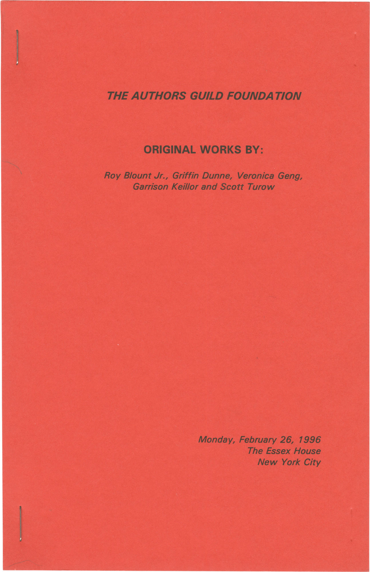 The Authors Guild Foundation: Original Works by Roy Blount Jr., Griffin Dunne, Veronica Geng, Garrison Keillor, and Scott Turow (First Edition)