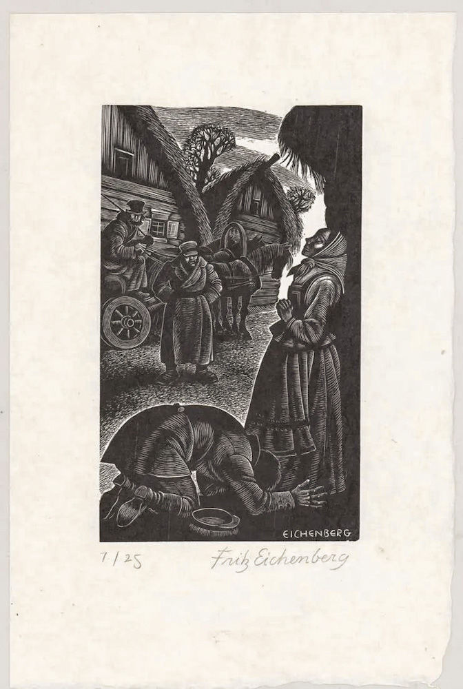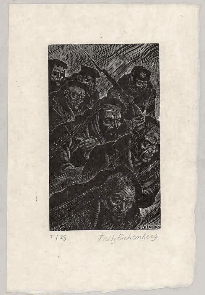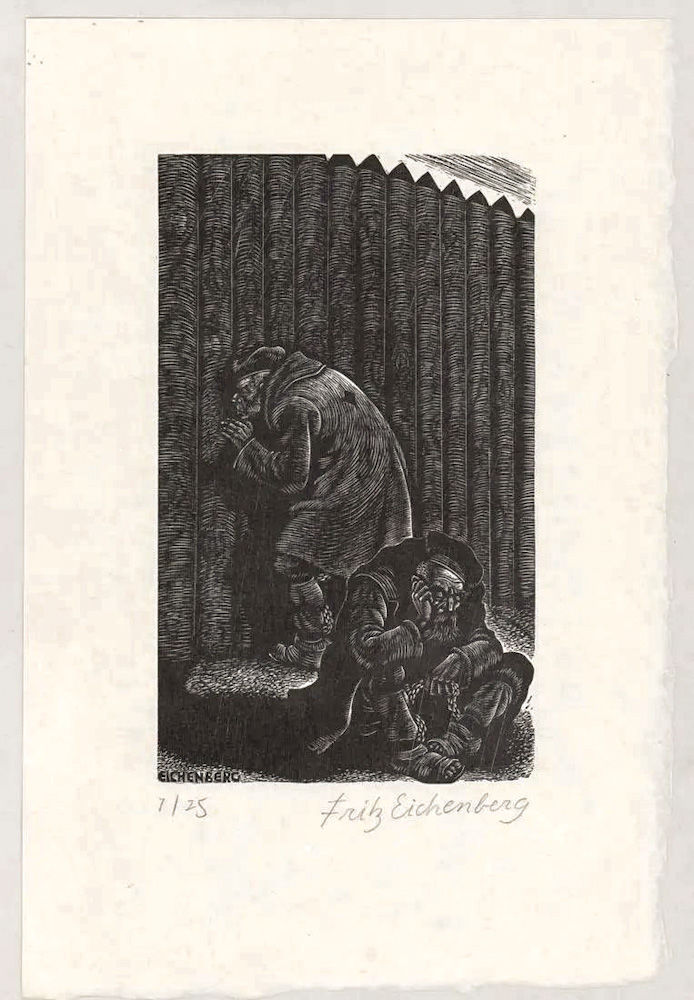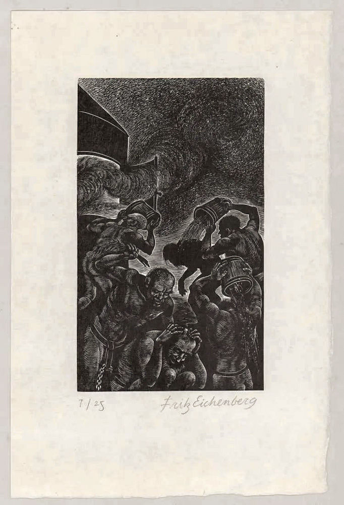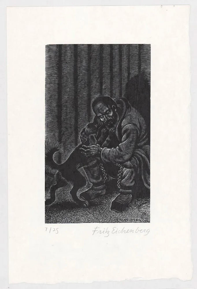 [New York]: [Limited Editions Club], [1982]. Hardcover. Fine in a Fine case. Fritz Eichenberg. Complete collection of 10 SIGNED wood engravings (7-3/4" x 11-3/4") by Fritz Eichenberg used to illustrate the Limited Editions Club edition of Dostoevsky's THE HOUSE OF THE DEAD, here presented as loose engravings individually SIGNED and numbered 7 of only 25 sets produced. Laid into a black cloth-backed folder with marbled boards and gilt lettering on the spine. Though there is no indication of such, this came from the artist's estate.