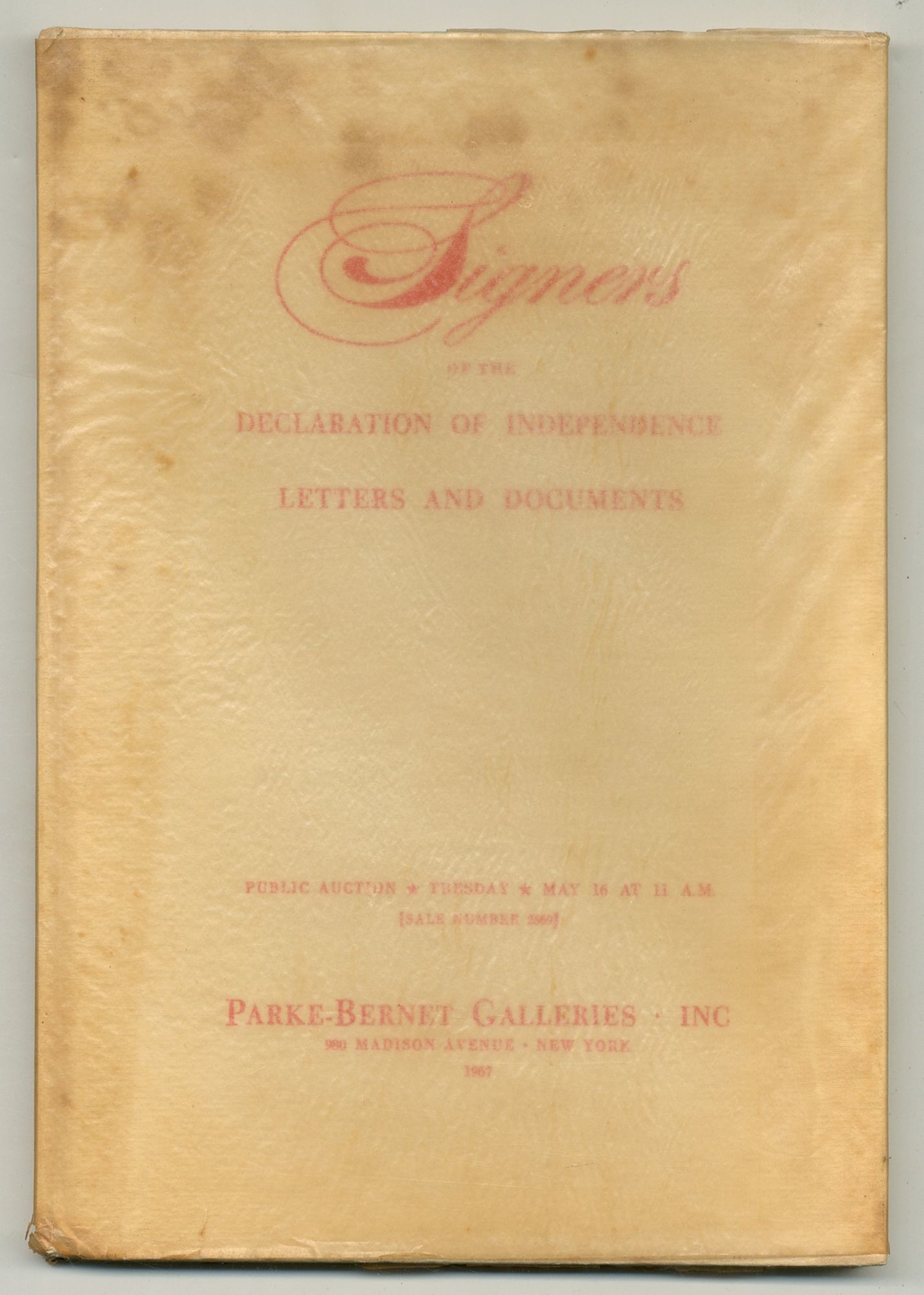[Auction Catalog]: Signers of the Declaration of Independence Letters and Documents: A George Washington Letter Written July the Fourth 1776