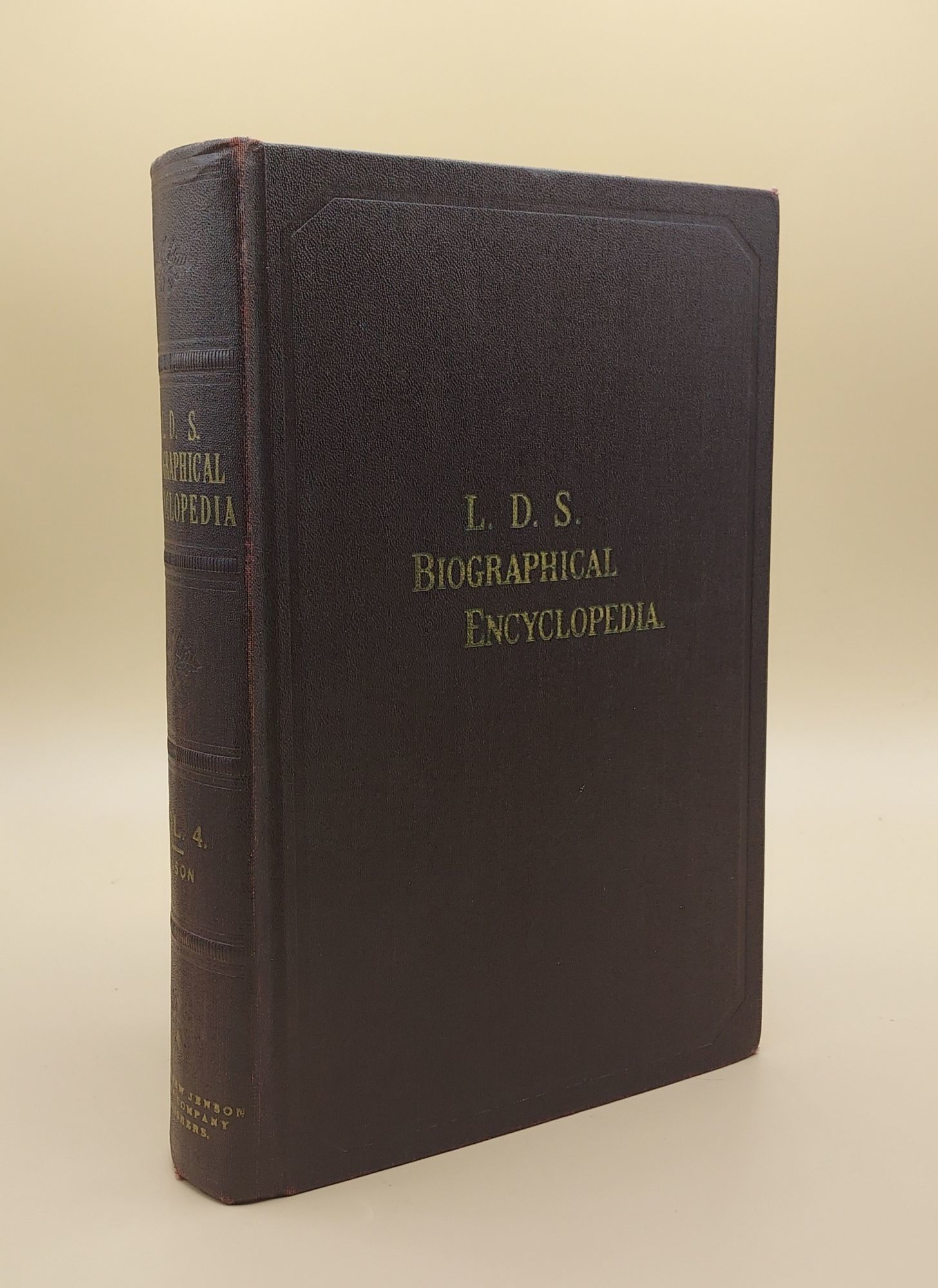 Salt Lake City, UT: The Andrew Jenson Memorial Association / The Deseret News Press, 1936. First edition. Hardcover. Very Good. 824pp. Octavo [24 cm] Maroon cloth with gilt stamped titles and blind stamped designs on the front cover and spine. Illustrated. Index. Minor rubbing to the extremities. The text block is cracked at the rear (text block still very strong). Illustrated. Jenson's massive compilation, begun in 1901 and covering the first one hundred years of the existence of the Church of Jesus Christ of Latter-day Saints, is a useful reference for genealogists and students of Mormon history. Flake 4413.