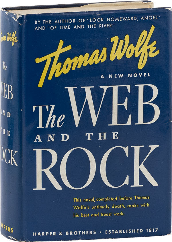 New York: Harper & Brothers Publishers, 1939. First Edition. First Printing. Octavo (21.25cm); dark blue cloth, blocked and titled in red and gilt on spine and front cover; dustjacket; viii,695,[1]pp. Trivial wear spine ends gently nudged, and a few tiny indentations to extremities; clean, Near Fine copy. Dustjacket is unclipped (priced $3.00), showing modest external wear, with a few tiny nicks, tears and attendant creases; Very Good+. Wolfe's third novel (and first posthumously published novel), centered around a young writer who travels from Asheville, NC to New York City, in hopes of finding fame, fortune, and love. JOHNSTON A7.1.a; HANNA 3873.