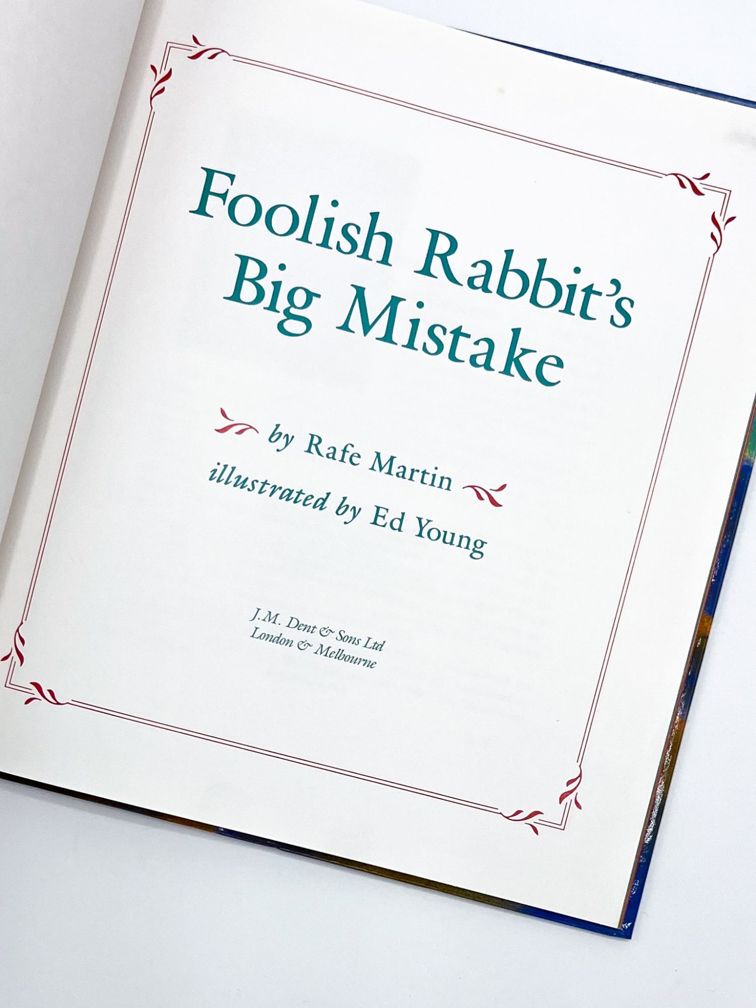New York: J. M. Dent & Sons Ltd, 1986. Fine.. Signed first UK edition of this retelling of a Buddhist Jataka story, a Boy Who Cried Wolf tale with a rabbit in the leading role. Ed Young entered the world of illustration as a commercial artist, and this background in compelling visual storytelling is evident in all his books. Over his long career, he has earned two Caldecott Honors and two nominations for the prestigious Hans Christian Andersen Award. 11'' x 9.75''. Original color pictorial boards. No dust jacket, as issued. Illustrated in color. [32] pages. Signed by Young on front free endpaper. Binding with a hint of edgewear. Clean.