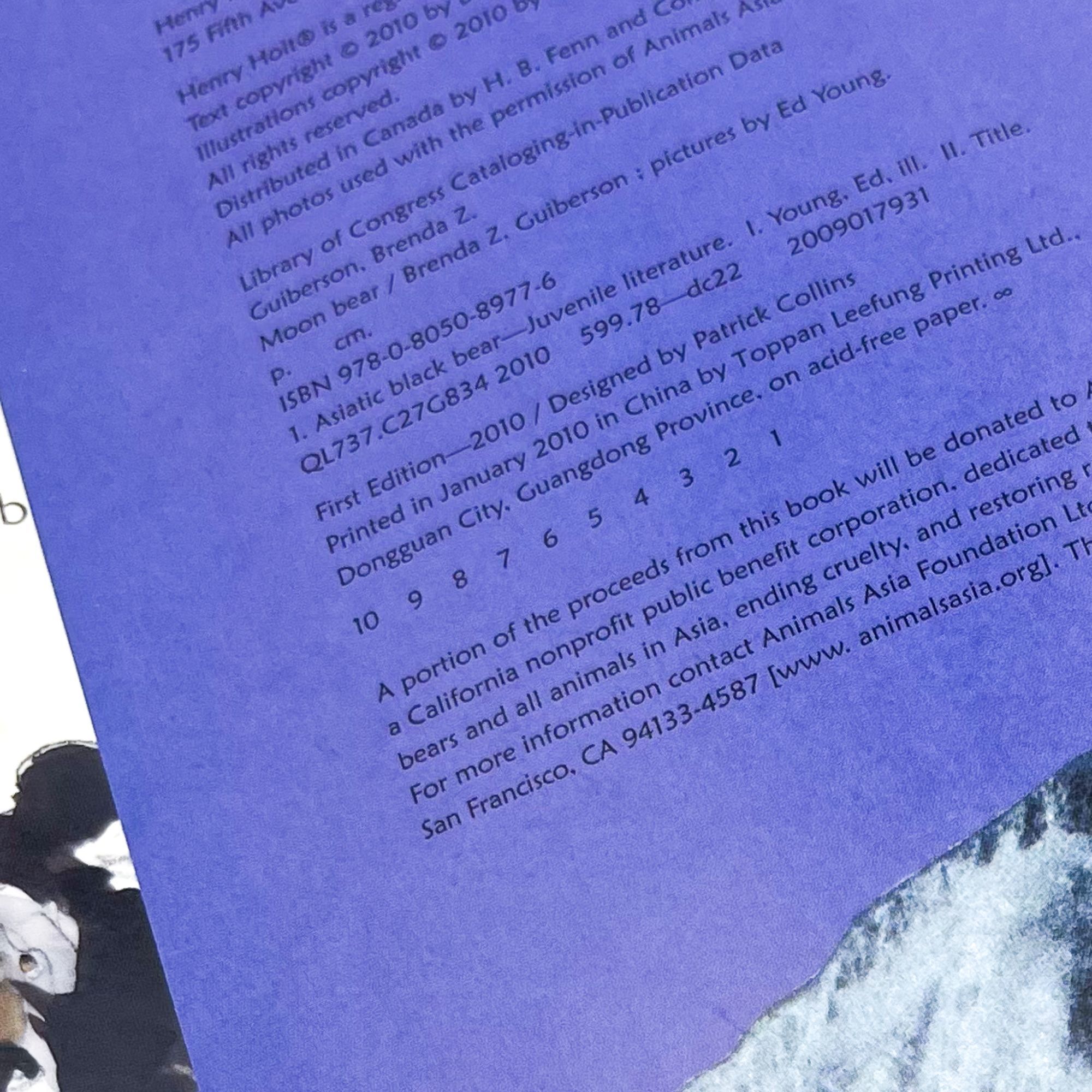 New York: Henry Holt and Company, 2010. Fine in near fine jacket.. Signed first printing of this charming story of an elusive moon bear, following her nocturnal life and explaining the nature of this endangered species. Ed Young entered the world of illustration as a commercial artist, and this background in compelling visual storytelling is evident in all his books. Over his long career, he has earned two Caldecott Honors and two nominations for the prestigious Hans Christian Andersen Award. 11.25'' x 8.5''. Original color pictorial boards. Original unclipped ($16.99) color pictorial dust jacket. Illustrated in color. [32] pages. Signed by Young to title page, dated '20. Jacket with a hint of edgewear. Bright.
