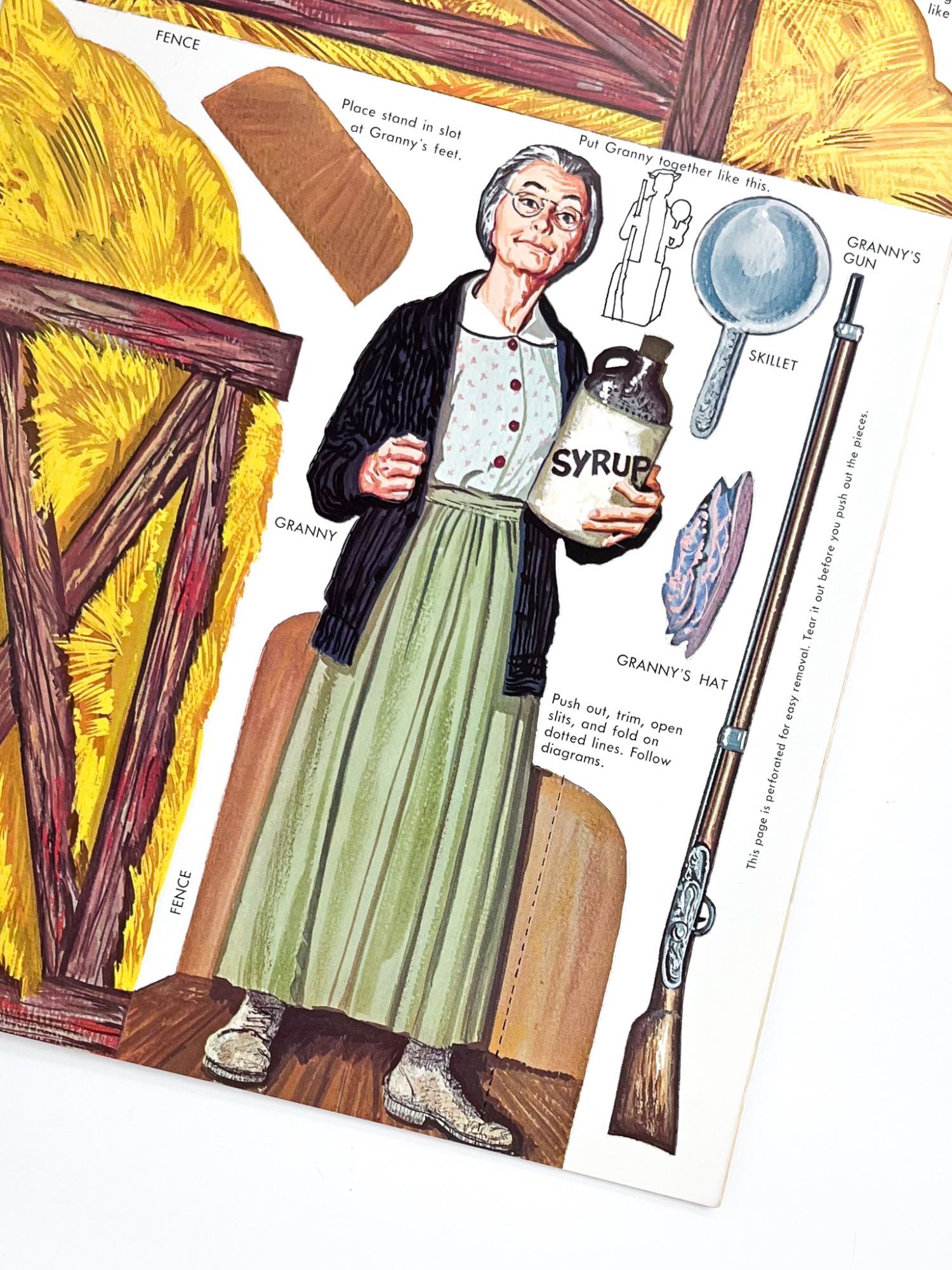 Racine: Whitman, 1964. Fine.. Authorized edition" of this charming unused collection of paper dolls from the classic sitcom, including all the Clampetts, a backdrop of the mansion, and even their truck. This delightful paper doll set features all the main cast in addition to Duke the dog, the various farm animals, and even Granny's shotgun. An excellent copy. 14'' x 10''. Original color pictorial wrappers, saddle-stapled, with perforated figures. Illustrated in color. [12] pages, printed one side only, with perforated figures. Sharp.