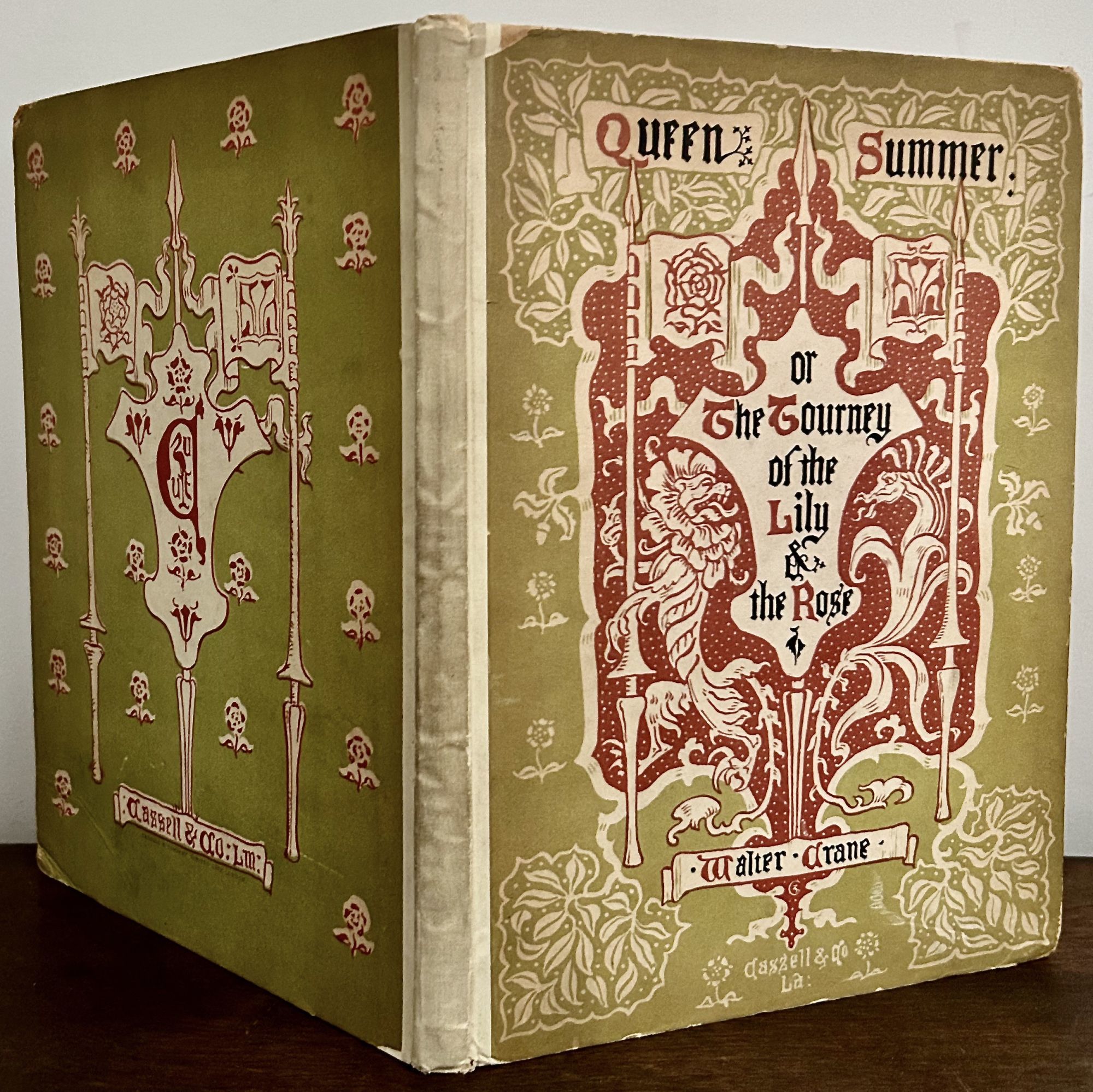 London: Cassell & Co, 1891. First edition. Hardcover. Orig. cream cloth spine and decorated boards. Very good. 40 pages. 28.5 x 20.5. SPENCER p.138. "The theme is of the flower masque and tournament of suitors for the Queen Summer's favour. The style is medieval; a kind of decorated Gothic of Crane's own devising." Text is written on scroll placards. Interior particularly bright and fresh, decorated endpapers. Decorated endpapers, corners bumped, overall a clean copy.