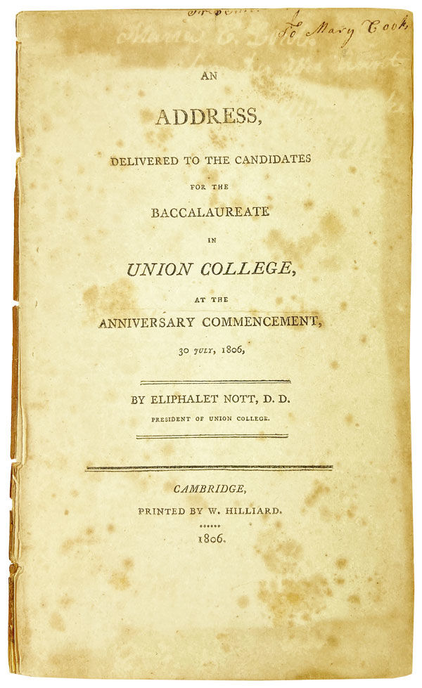 An Address, delivered to the candidates for the baccalaureate in Union College, at the anniversary commencement, 30 July, 1806
