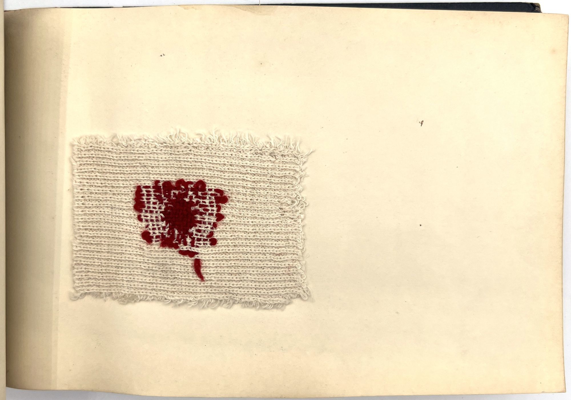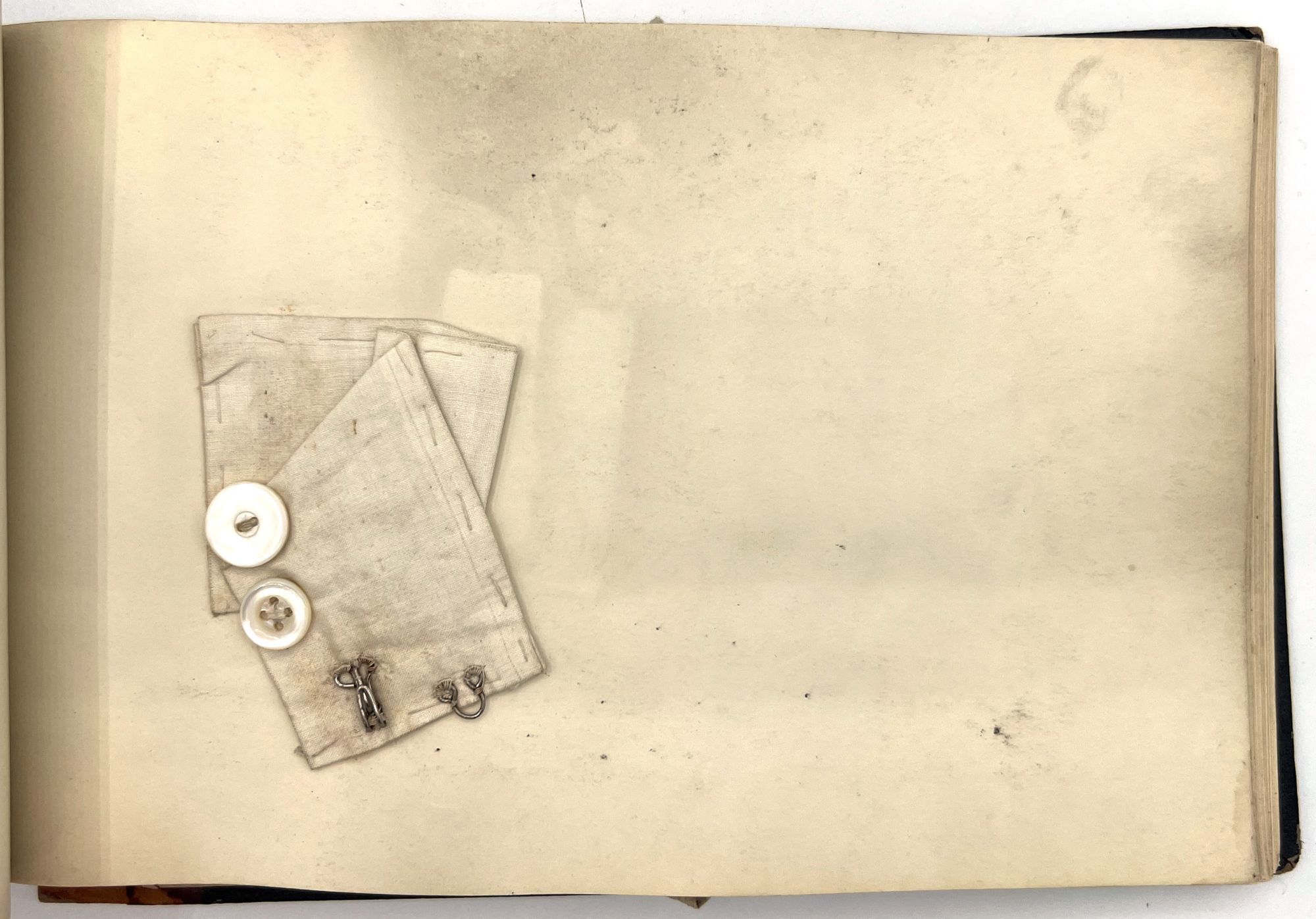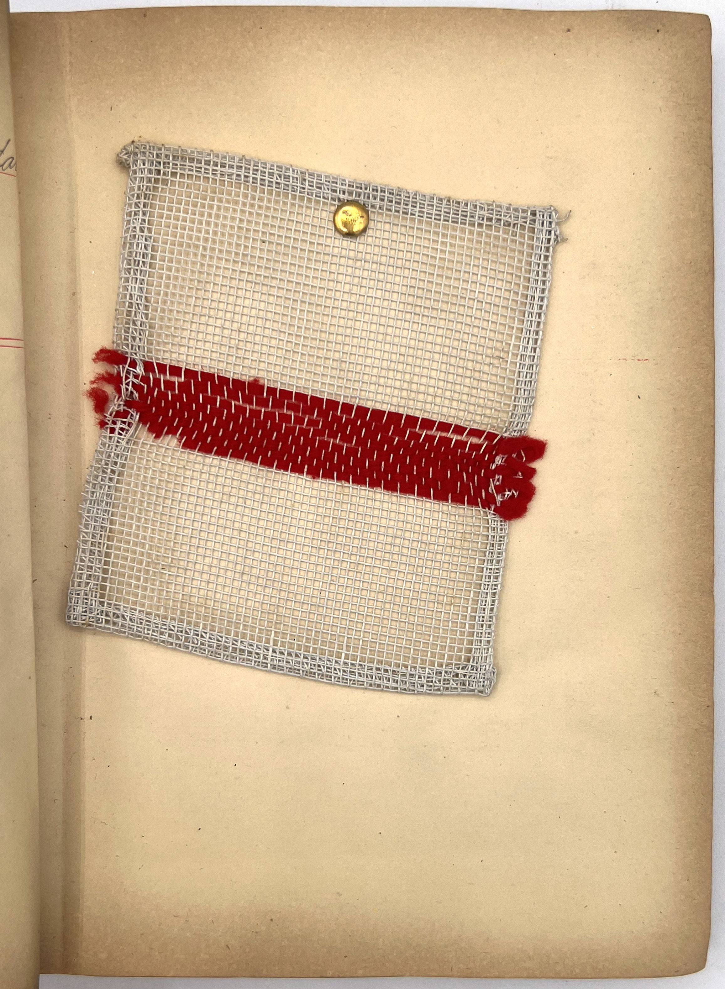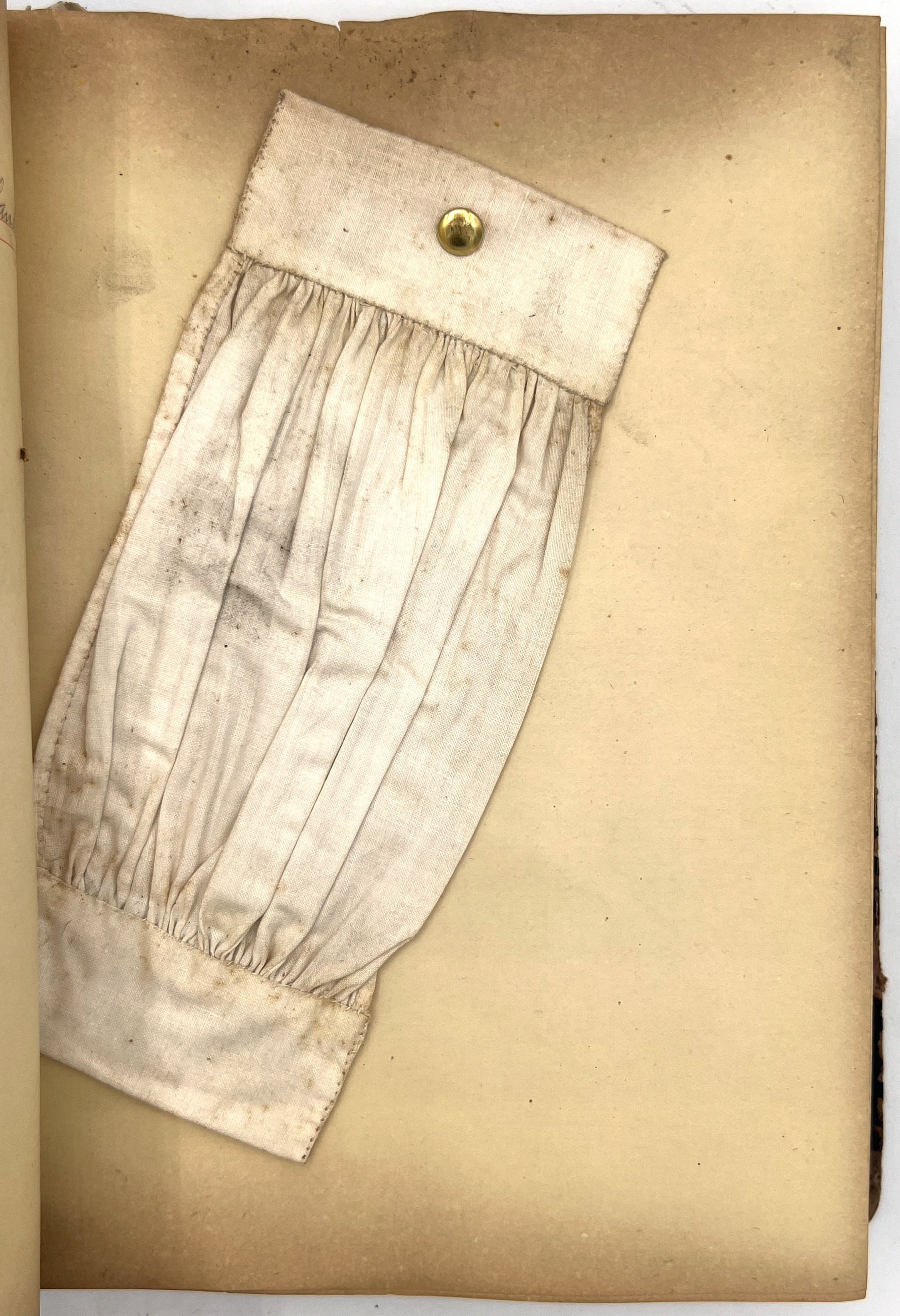 United States, 1900. Good. Bindings worn, upper board of one book detached with damage, spine missing on other. Toning, dust soiling.. Album of sewing samples by Effie Ashton. United States, c.1900. Oblong 8vo (5.75" by 9.25"), approx. 50 blank leaves sewn in original decorated paper covered boards backed in red sheep, manuscript paper label to upper board. Contains 2 pp. of manuscript class notes, and approx. 25 samples of sewing and embroidery. The notes a narrative eon cloth and its uses and Selvedge and Bias and their significant and information on warp and woof. Techniques/features include: basic running stitch/back stitch; hemming and tucks; basting and overhanding; gathering; gussets; buttons; patching; herringbone stitch; stocking darning; machine running stitch; seaming; quilting; "fancy work" (i.e. embroidery); drawn work. Each example is numbered 1 - 25 with a brief narrative verso. Fine workmanship. The student was awarded an "A" for the collection.