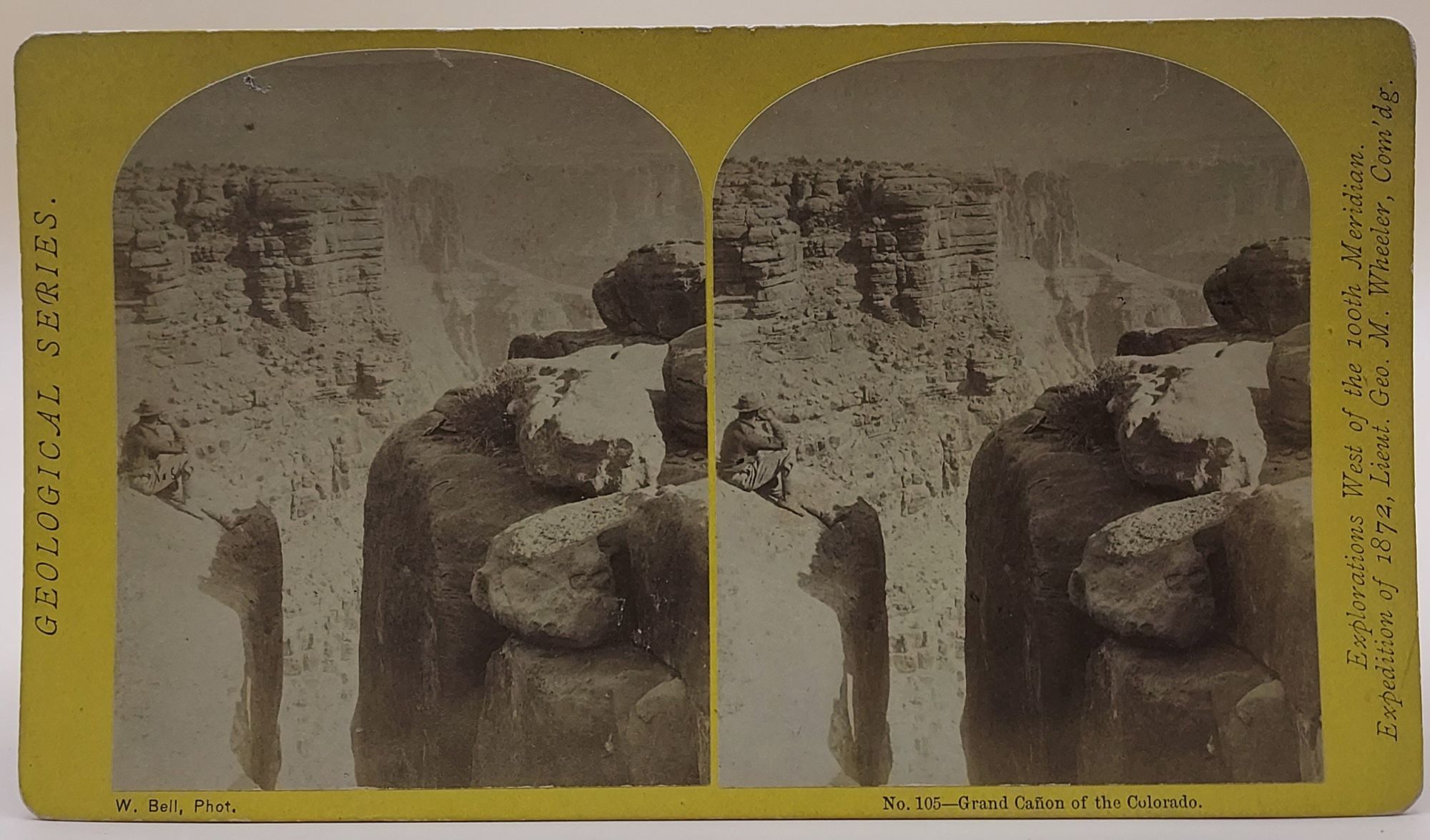 Photograph. Near Fine. Albumen stereoview [9 1/4 cm x 15 cm] on a yellow mount [10 cm x 17.5 cm] No backstamp. Geographical and Geographical Explorations and Surveys West of the 100th Meridian. Expedition of 1872. William Bell, who had established a studio in Philadelphia, was commissioned in 1872 by Lieutenant George Wheeler to accompany him as a photographer on an expedition into Arizona. Later, he worked as a photographer for the Pennsylvania railroad and with an expedition to Patagonia. (from Getty Museum).
