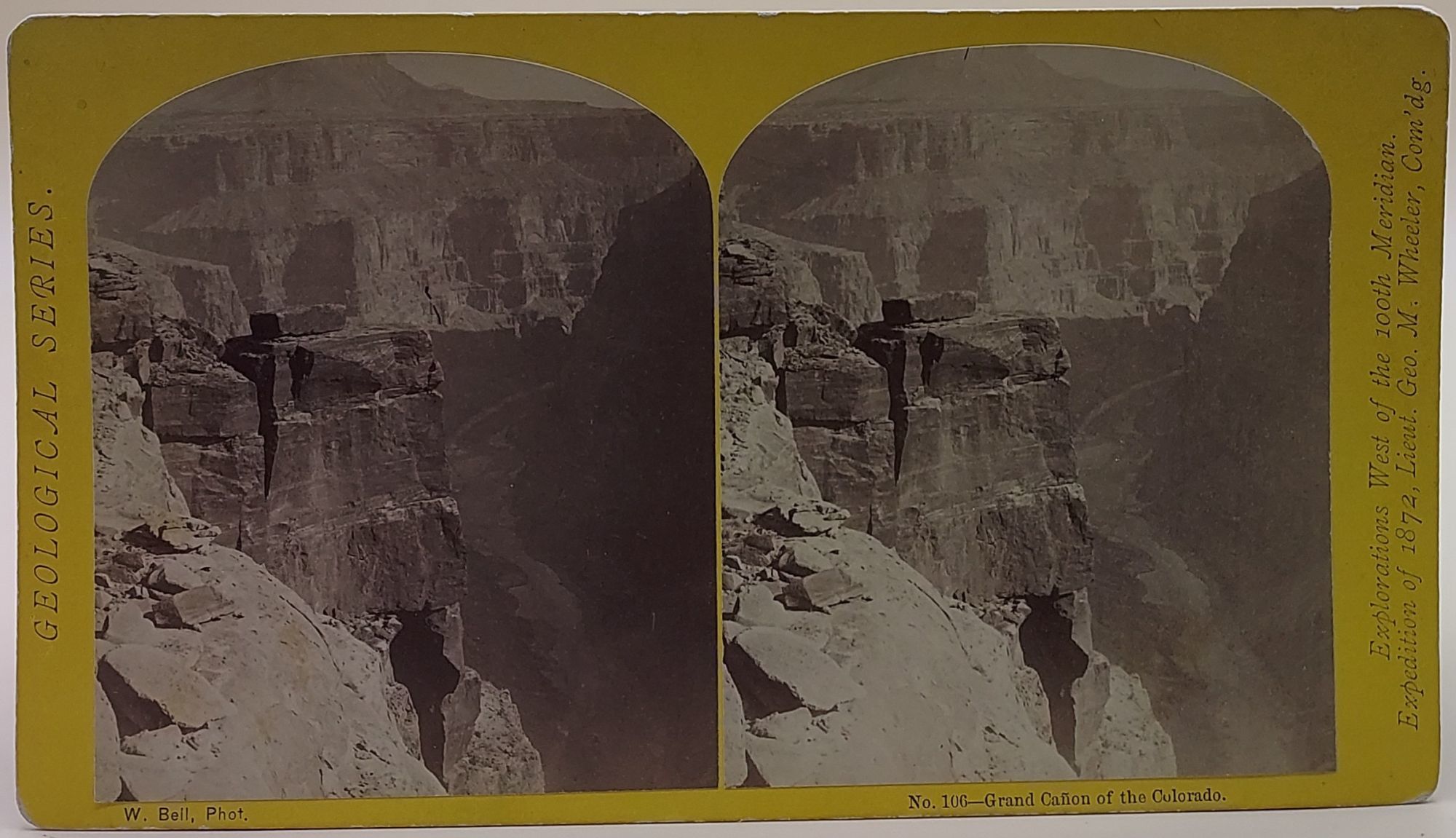 Photograph. Fine. Albumen stereoview [9 1/4 cm x 15 cm] on a yellow mount [10 cm x 17.5 cm] No backstamp. Geographical and Geographical Explorations and Surveys West of the 100th Meridian. Expedition of 1872. William Bell, who had established a studio in Philadelphia, was commissioned in 1872 by Lieutenant George Wheeler to accompany him as a photographer on an expedition into Arizona. Later, he worked as a photographer for the Pennsylvania railroad and with an expedition to Patagonia. (from Getty Museum).