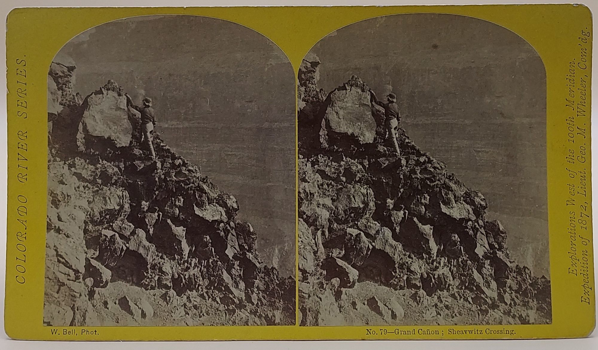 Photograph. Near Fine. Albumen stereoview [9 1/4 cm x 15 cm] on a yellow mount [10 cm x 17.5 cm] No backstamp. Geographical and Geographical Explorations and Surveys West of the 100th Meridian. Expedition of 1872. William Bell, who had established a studio in Philadelphia, was commissioned in 1872 by Lieutenant George Wheeler to accompany him as a photographer on an expedition into Arizona. Later, he worked as a photographer for the Pennsylvania railroad and with an expedition to Patagonia. (from Getty Museum).