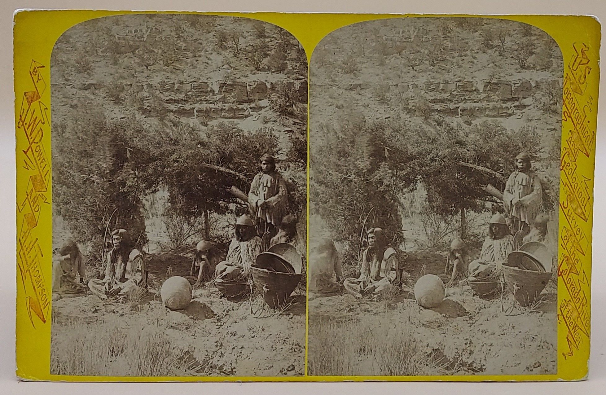 Washington DC: J. F. Jarvis. Photograph. Very good. Stereoview [11 cm x 15.5 cm] on a yellow mount [11.5 cm x 17.5 cm] with a printed paper label on the reverse. Printed J. F. Jarvis label on the reverse as well. U.S. Topographical and Geological Survey of the Colorado River of the West.