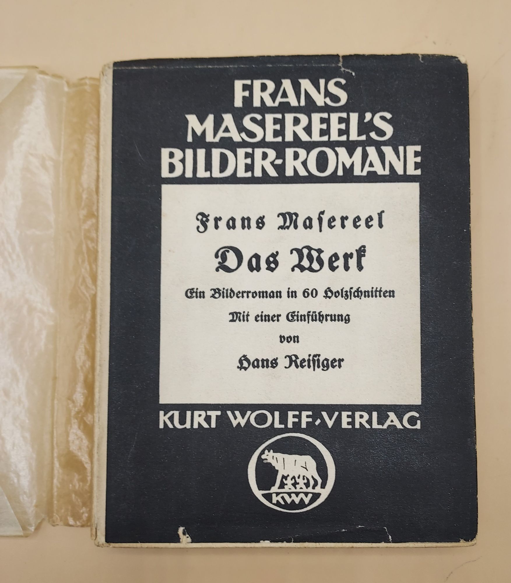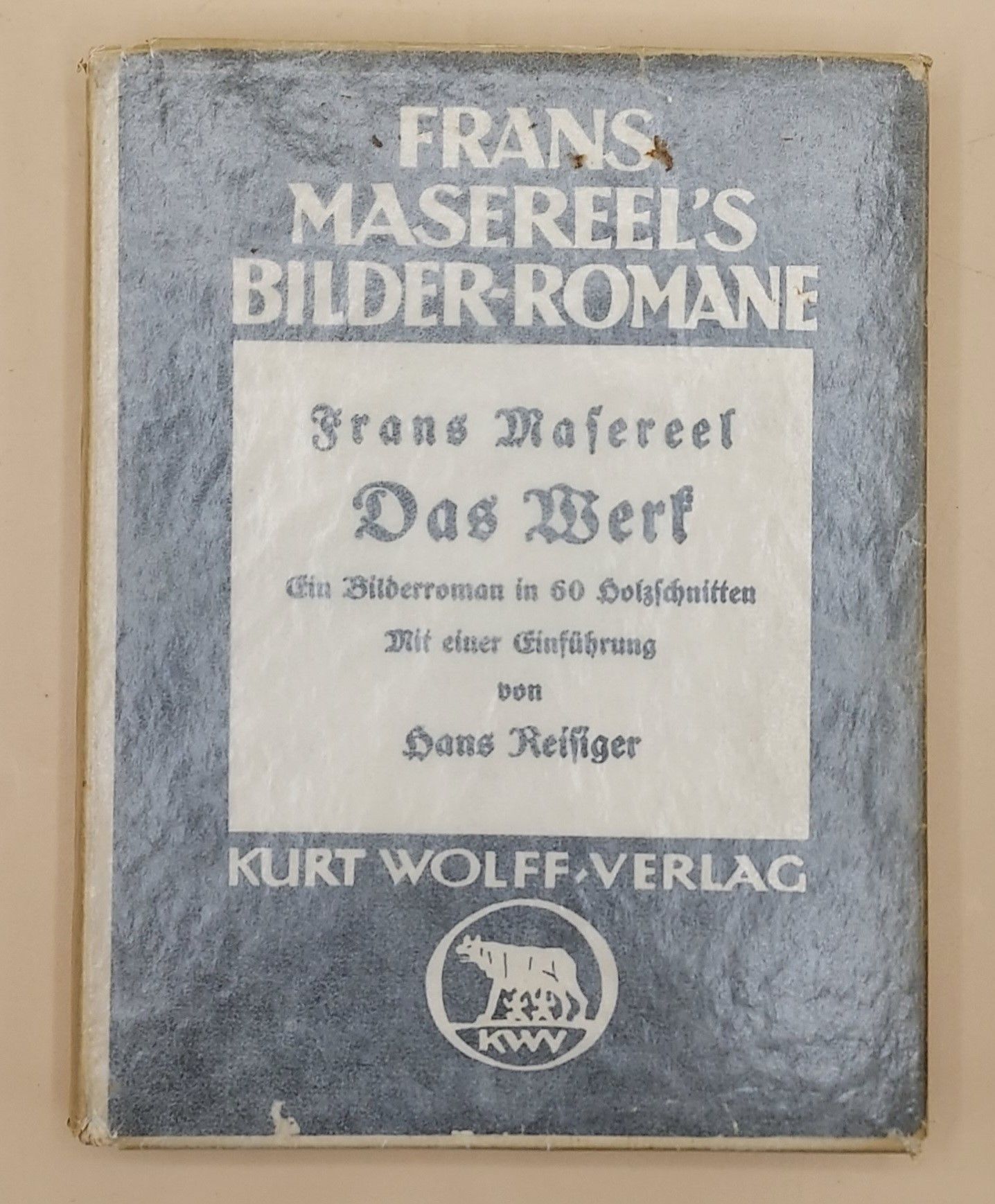 München: Kurt Wolff Verlag, 1928. Deutsche Volksausgabe. Hardcover. Very good/very good. Sextodecimo [15.5 cm] White and black paper over thin card boards. In the printed black and white dust wrapper. The wrapper shows light edge wear and is a bit darkened at the spine. With the publisher's glassine wrapper as well, with light chipping to the spine ends. German text. Ritter B a) Nr. 21. II. Masereel's woodcut series, which were mainly of sociocritical content and of expressionistic formal concept, brought Masereel international acknowledgment.