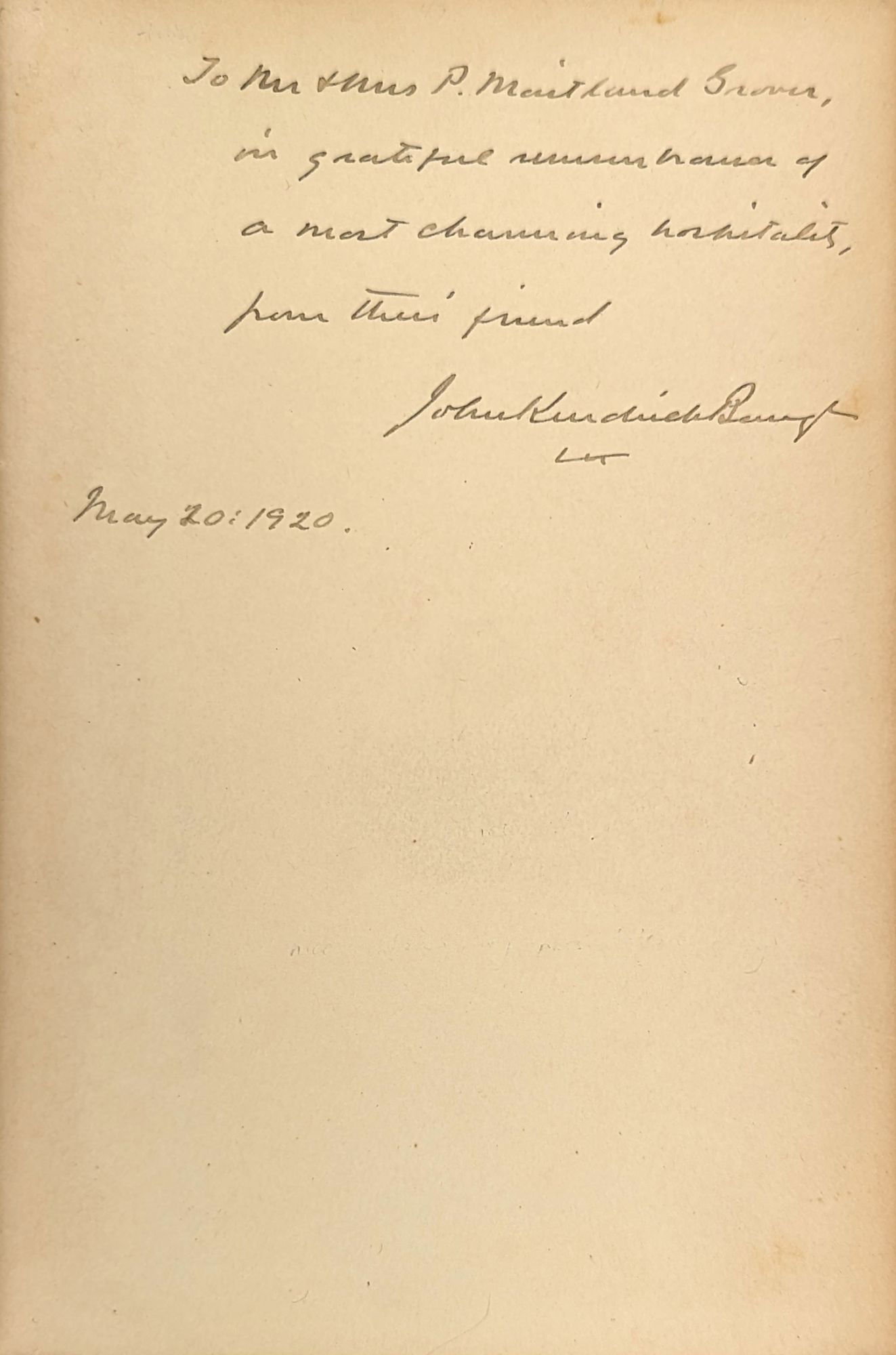 New York: The Century Co, 1916. Very Good. New York: The Century Co., 1916. First Edition. Signed by the author on front free endpaper with inscription "To Mr & Mrs P. Maitland Grover (?), in grateful remembrance of a most charming hospitality, from their friend John Kendrick Bangs. May 20: 1920."