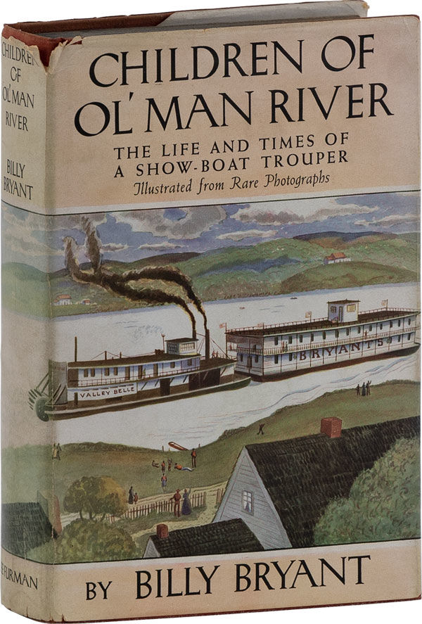 New York: Lee Furman, 1936. First Edition. First printing. Octavo (21cm). Red cloth stamped in gilt, dark topstain, in pictorial dust jacket; xiv,303,[1]pp; black and white plates. A firm copy, lightly faded at edges, spotting to edges and endleaves: around Very Good. Jacket unclipped (priced $3.00), rubbed with chips at head, lightly foxed: around Very Good. Memoir of a family living on a floating theater boat on the Ohio and Mississippi Rivers. [62100].