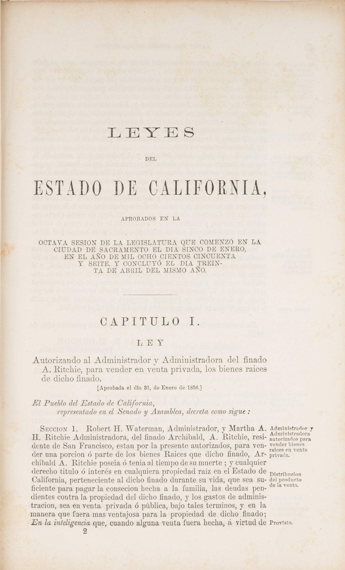 Leyes de California Aprobadas en la Octava Sesion de la Legislatura..