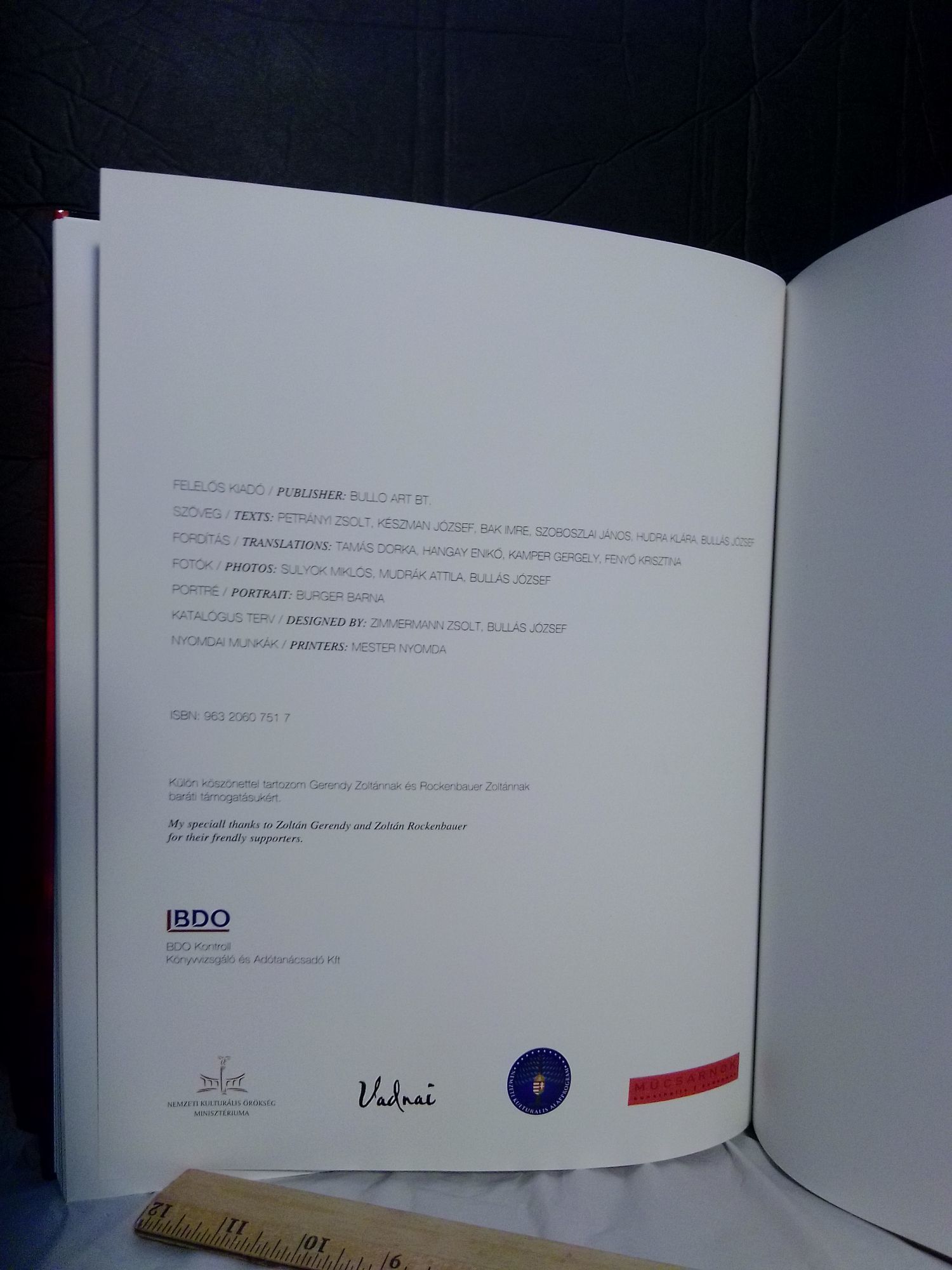 Budapest: Ernst Museum; Vadnai Galeria, 2002. Hardcover. Quarto; VG-/VG-; red spine with black text; dust jacket exterior shows mild rubbing wear; light edge wear; cloth exterior shows minimal wear; tight binding; textblock exterior edges have light toning; pictorial endpapers; interior clean; profusely illustrated; pp 159; text in Hungarian and English; ISBN 96320607517; inscribed by artist; arts - Modern.