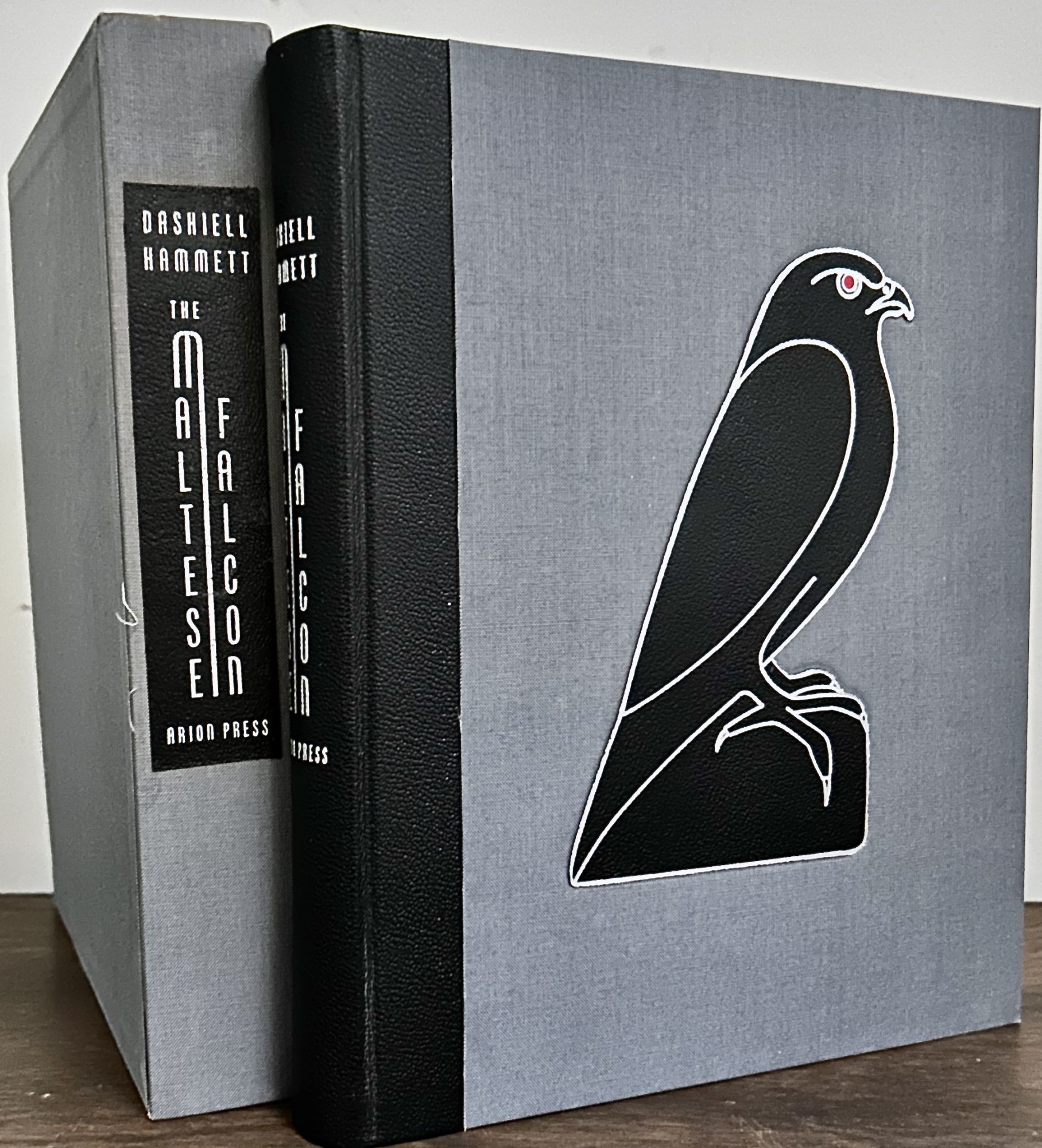 San Francisco: Arion Press, 1983. Hardcover. Orig. black morocco spine and gray cloth, falcon a raised inset front and back covers. Fine in fine slipcase. 291 pages. 26 x 21 cm. Limited edition, one of 400. Illustrated with photographs of Sam Spade's San Francisco. Introduction by David Fechheimer, a private investigator, and an authority on Hammett. Illustrations are architectural photographs and street maps of the actual locations mentioned in the novel. Endpapers are San Francisco street maps. The eleventh publication of the press. Laid-in the prospectus for the publication. Almost as new copy.