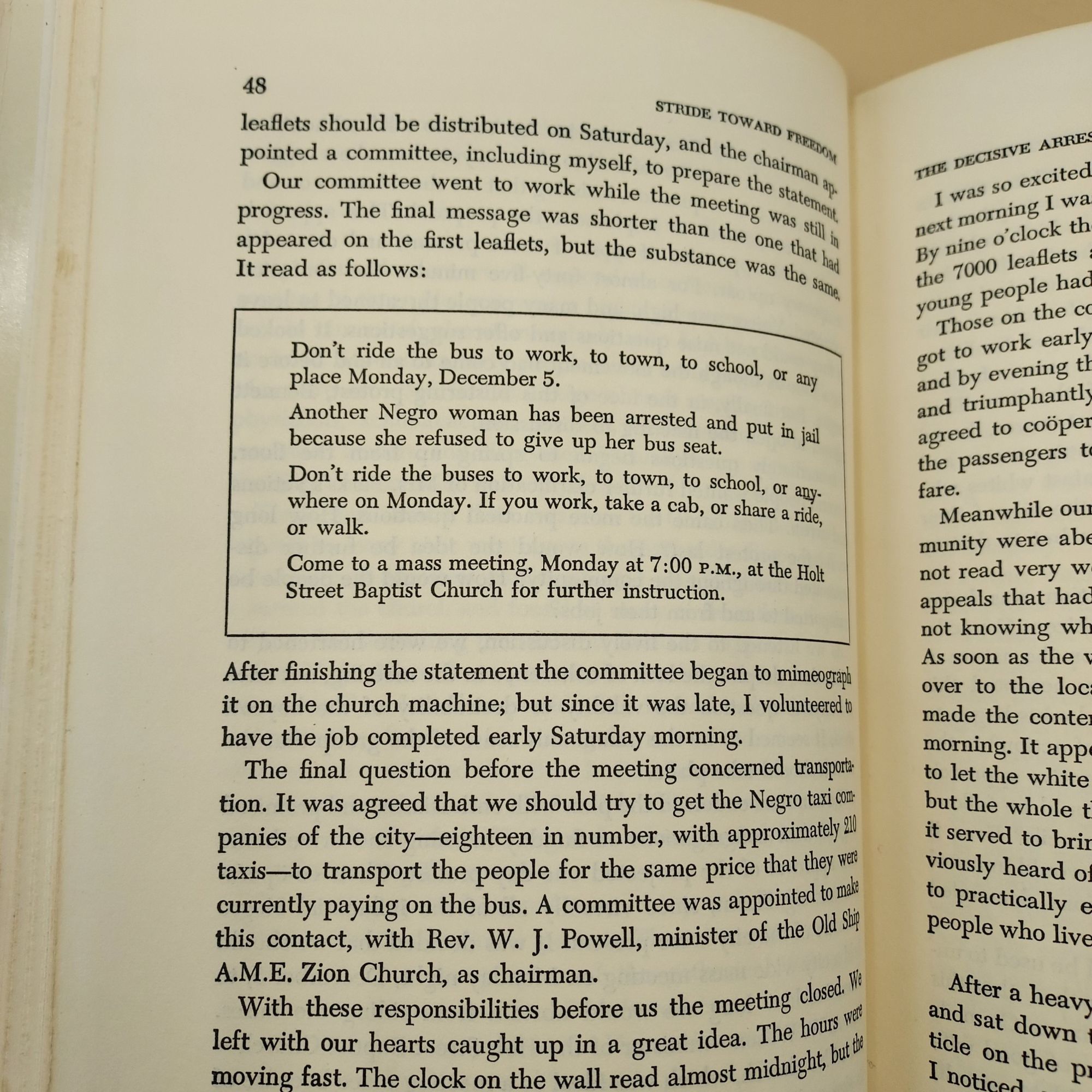 King's classic and very personal account of what began as a bus strike, sparked by the arrest of Rosa Parks, and ended in a Supreme Court decision and the first successful large-scale application of nonviolent resistance to an American situation.