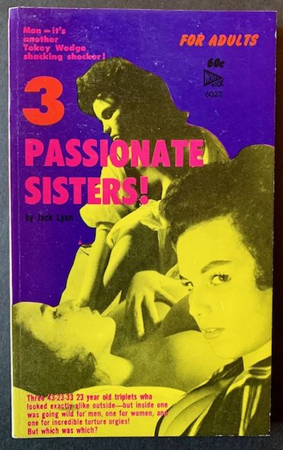 Chicago: Novel Books, 1962. Original wraps. Fine. A gorgeous copy of the 1962 1st printing. Bright, crisp and very tight. Almost as new. Pocketbook, Novel Books 6023. "Three 43-23-33 23 year old triplets who looked exactly alike outside -- but inside one was going wild for men, one for women, and one for incredible torture orgies! But which was which?
