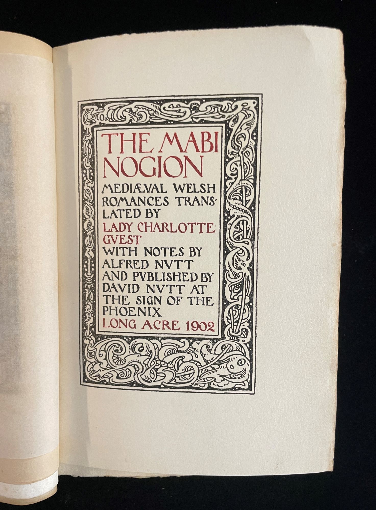 Long Acre8vo: Published by David Nutt at the Sign of the Phoenix, 1902. 1st Edition Thus. Hardcover. Very Good +. Ault, Norman (frontispiece by). Publisher's binding, olive-colored paper over boards, paper spine label, 8vo, double frontispiece of same (binder error?) xii, 362 (4), sides untrimmed, most leaves uncut. Other works by editor in front. Headers in red. Designed in the Arts&Crafts style. A handsome production, reprinting Lady Charlotte's 1877 translation (the most popular at the time, until subsumed by Gwyn Jones in 1948) with notes by Alfred Nutt, son of publisher David Nutt. OCLC lists only 12 libraries with some edition of this version. WELSH CELTIC FABLES KING ARTHUR.