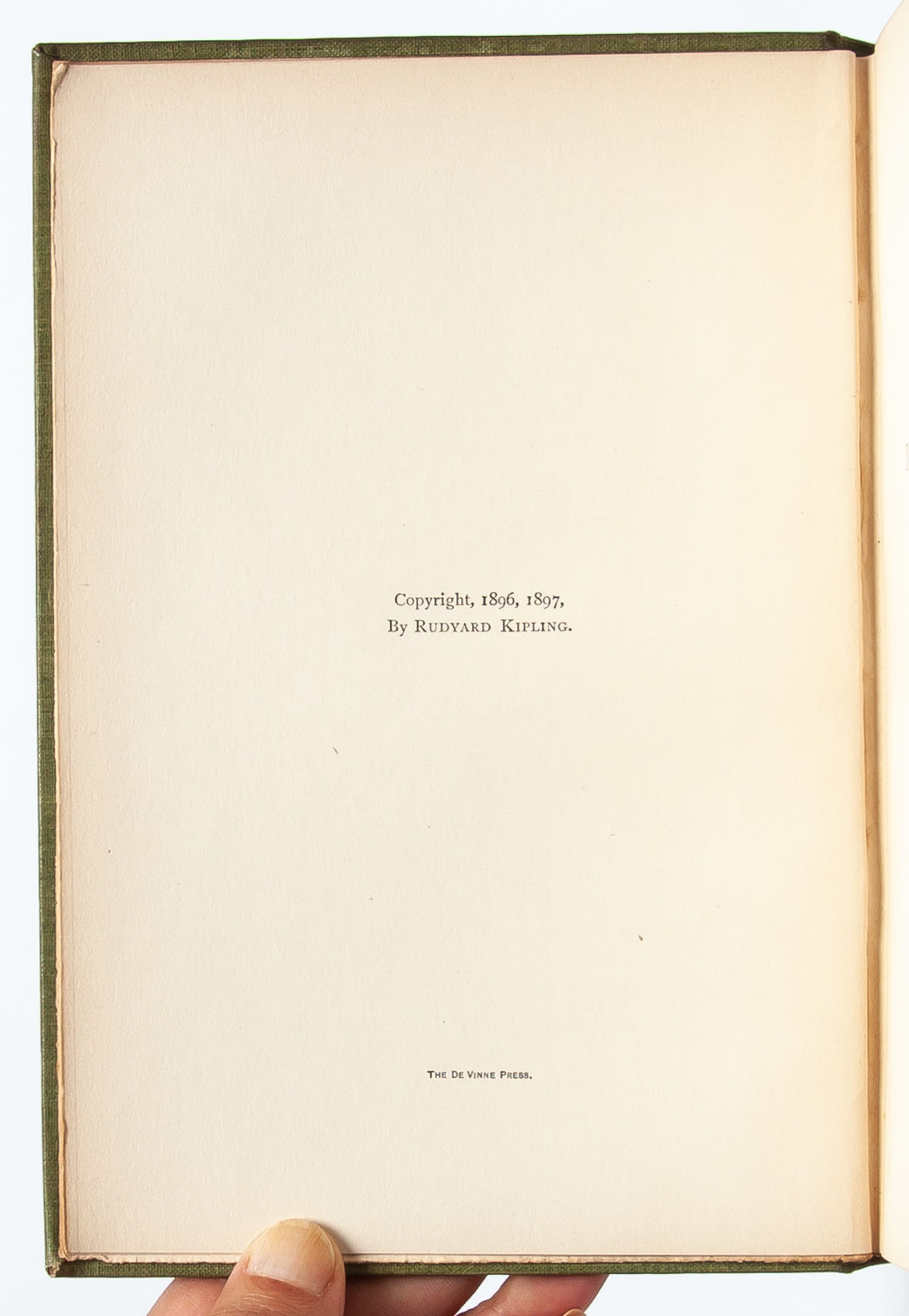 New York: The Century Co, 1897. First edition. Near Fine. Preceding the first British edition. An attractive copy of Kipling's classic tale of the Grand Banks. Original publisher's cloth binding stamped in gilt, red, and black. Top edge gilt. A Nearly Fine copy of the book on account of a small spot to the front joint else a square and bright, retaining its gilt and colors; internally fresh and unmarked. A fantastic coming-of-age story set on the rough seas, it was famously adapted for the screen in 1937, for which Spencer Tracy won a best actor Oscar.