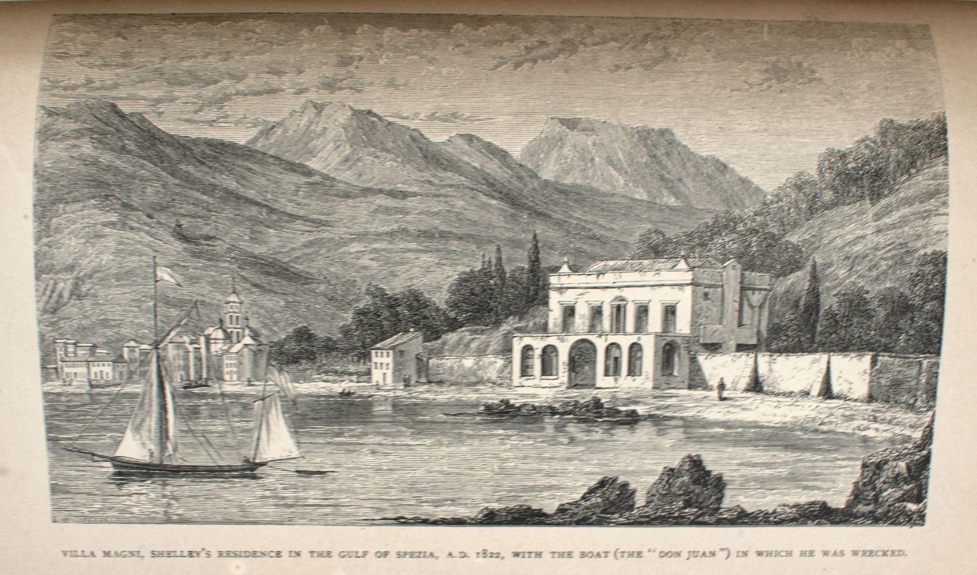 - 2 plates: nature view, portrait of the author, 304 pp.; frontispiece portrait of Shelley and 2 plates, 214 pp.; frontispiece por